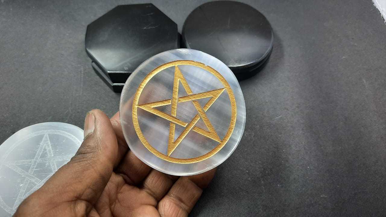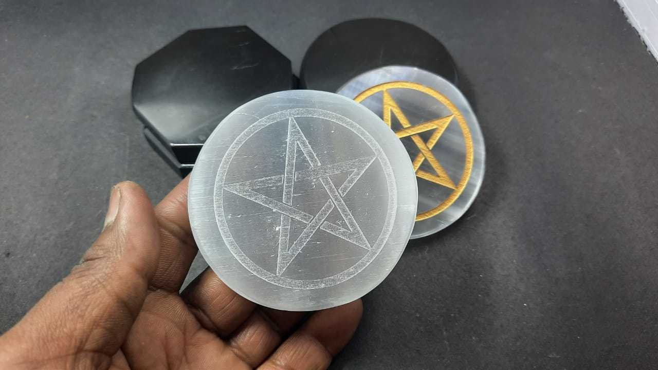 सेलेनाइट स्टार एनग्रेविंग डिस्क स्लाइस
