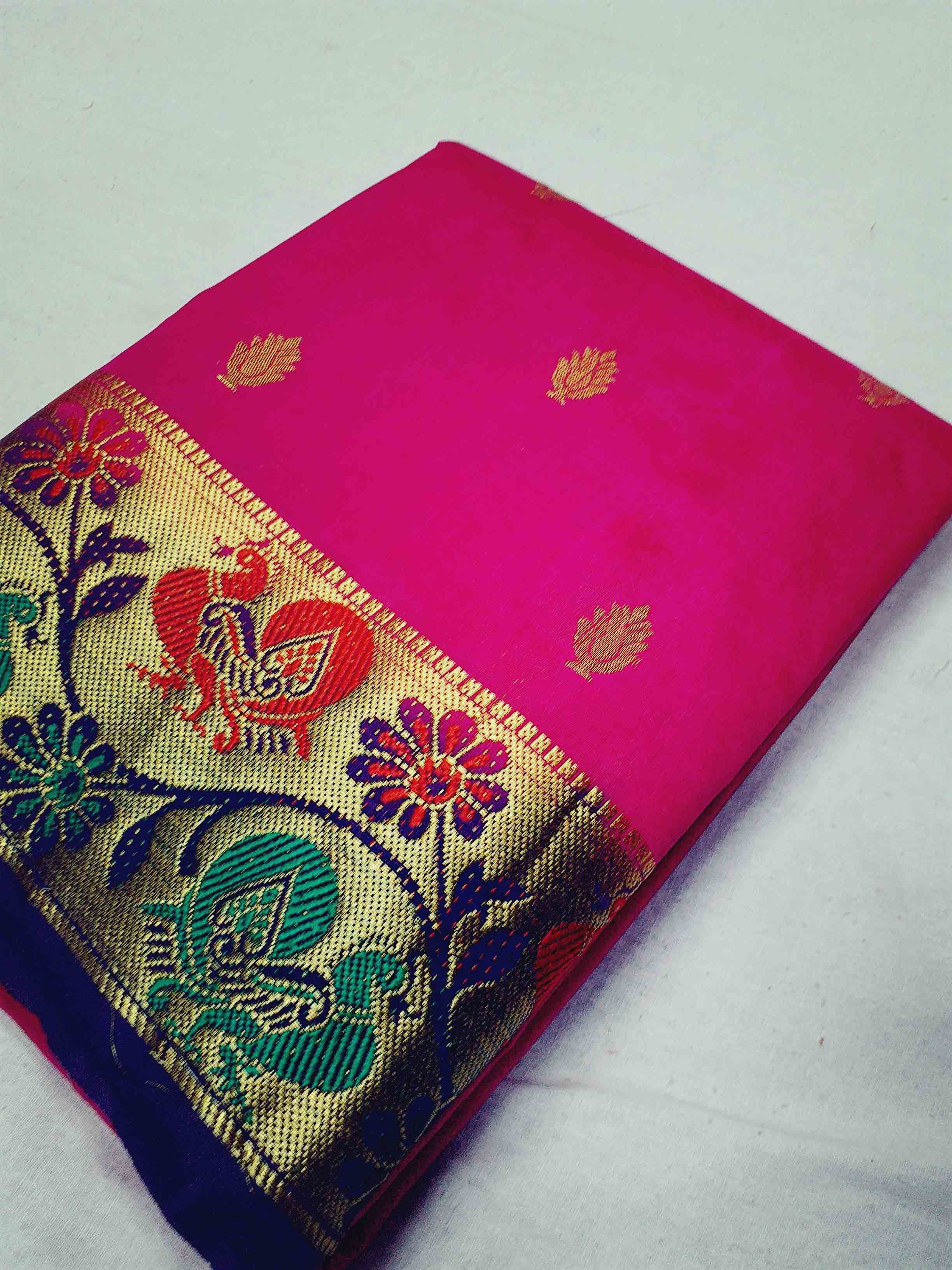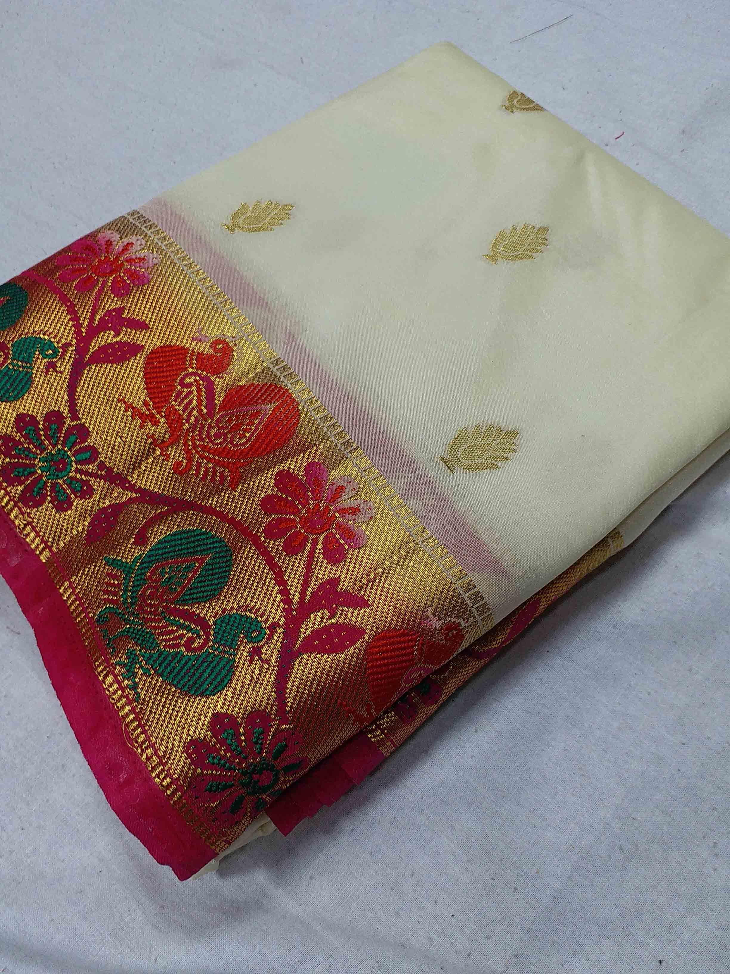 शिफॉन सेमी पैठानी कंट्रास्ट पीकॉक बॉर्डर साड़ी (डिज़ाइन नंबर 3)