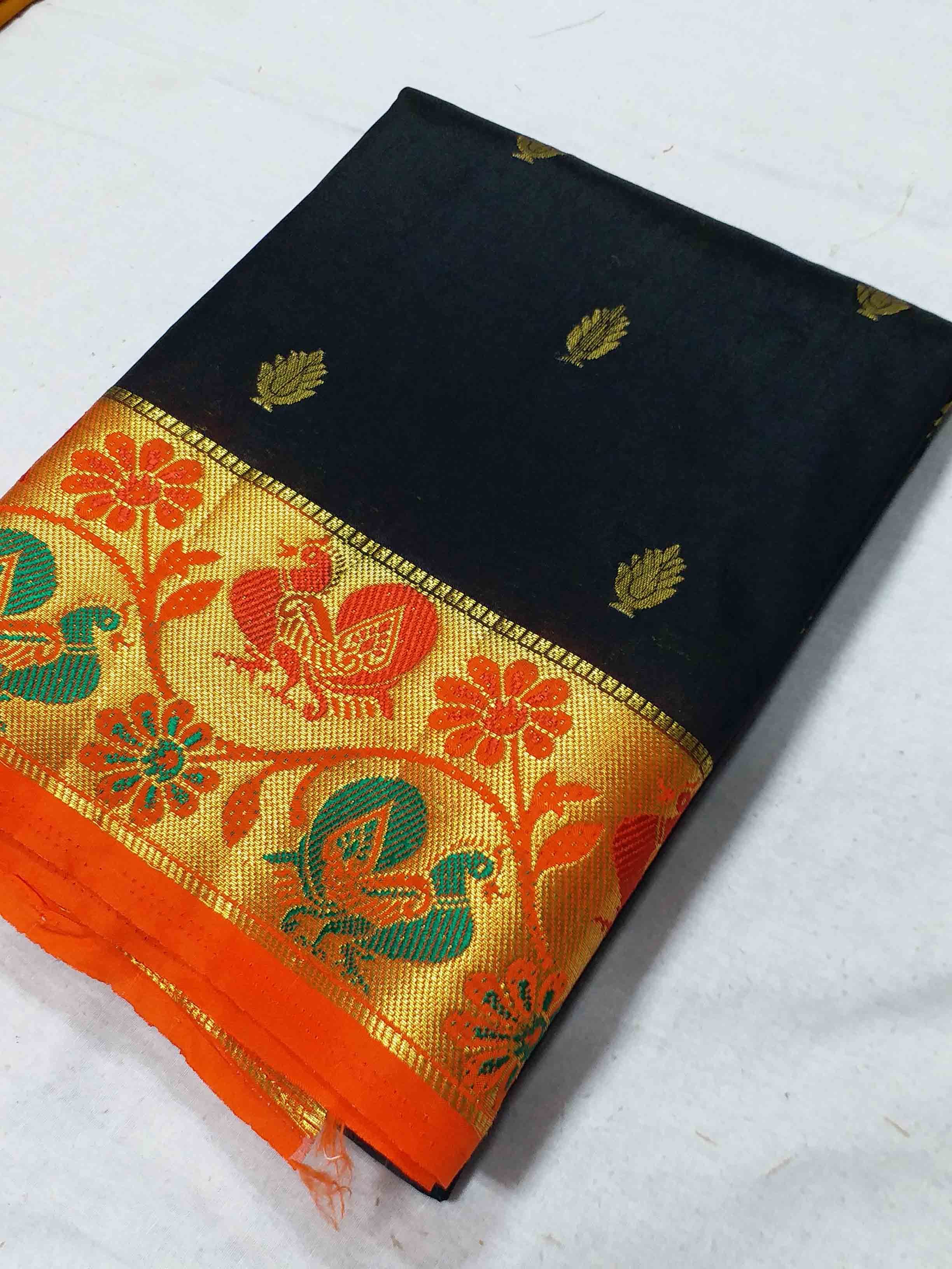 विभिन्न रंगों में उपलब्ध लेडीज़ ब्लैक बॉर्डर हैंडलूम साड़ी