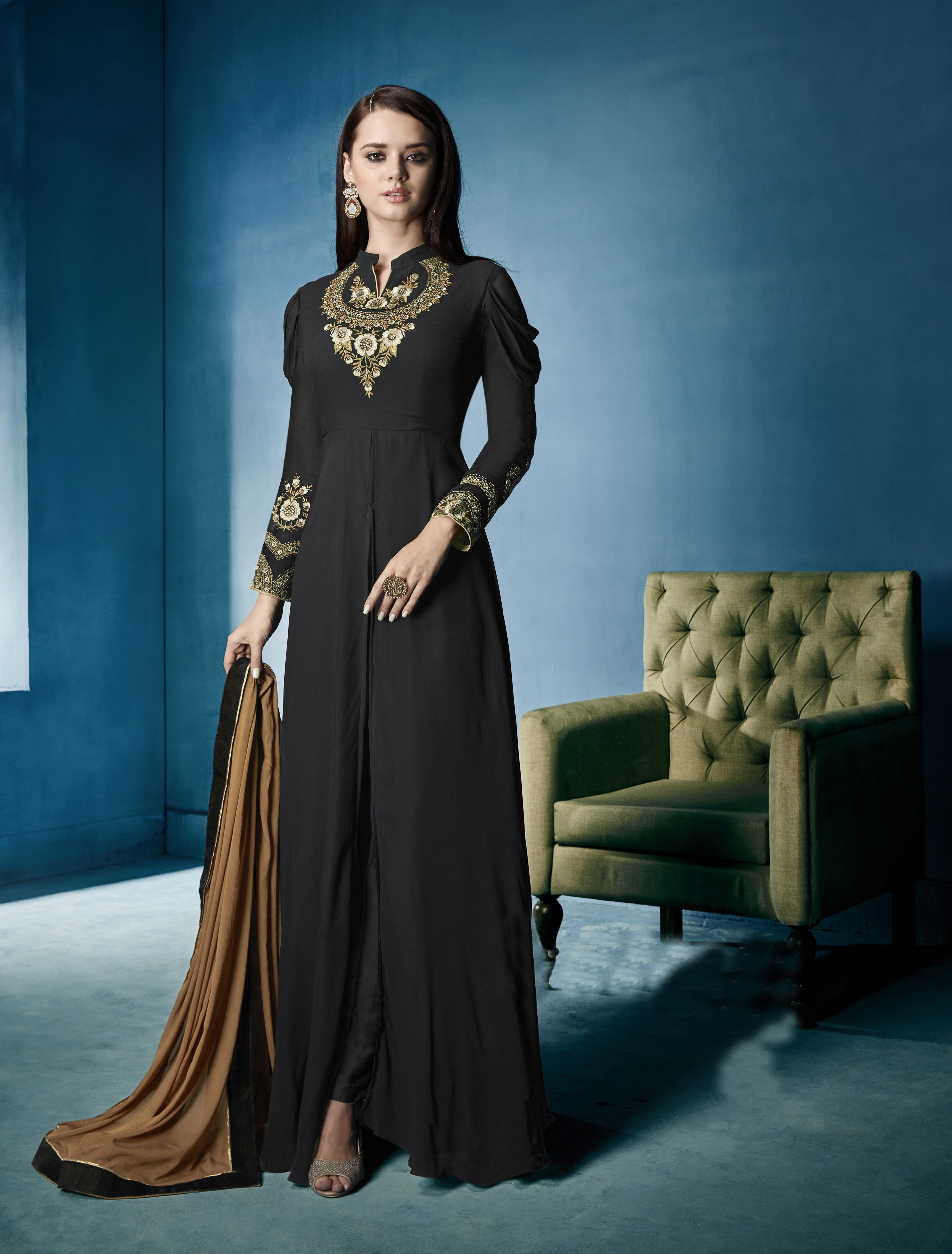 ब्लैक न्यू स्टाइलिश स्ट्रेट कट सलवार कमीज़