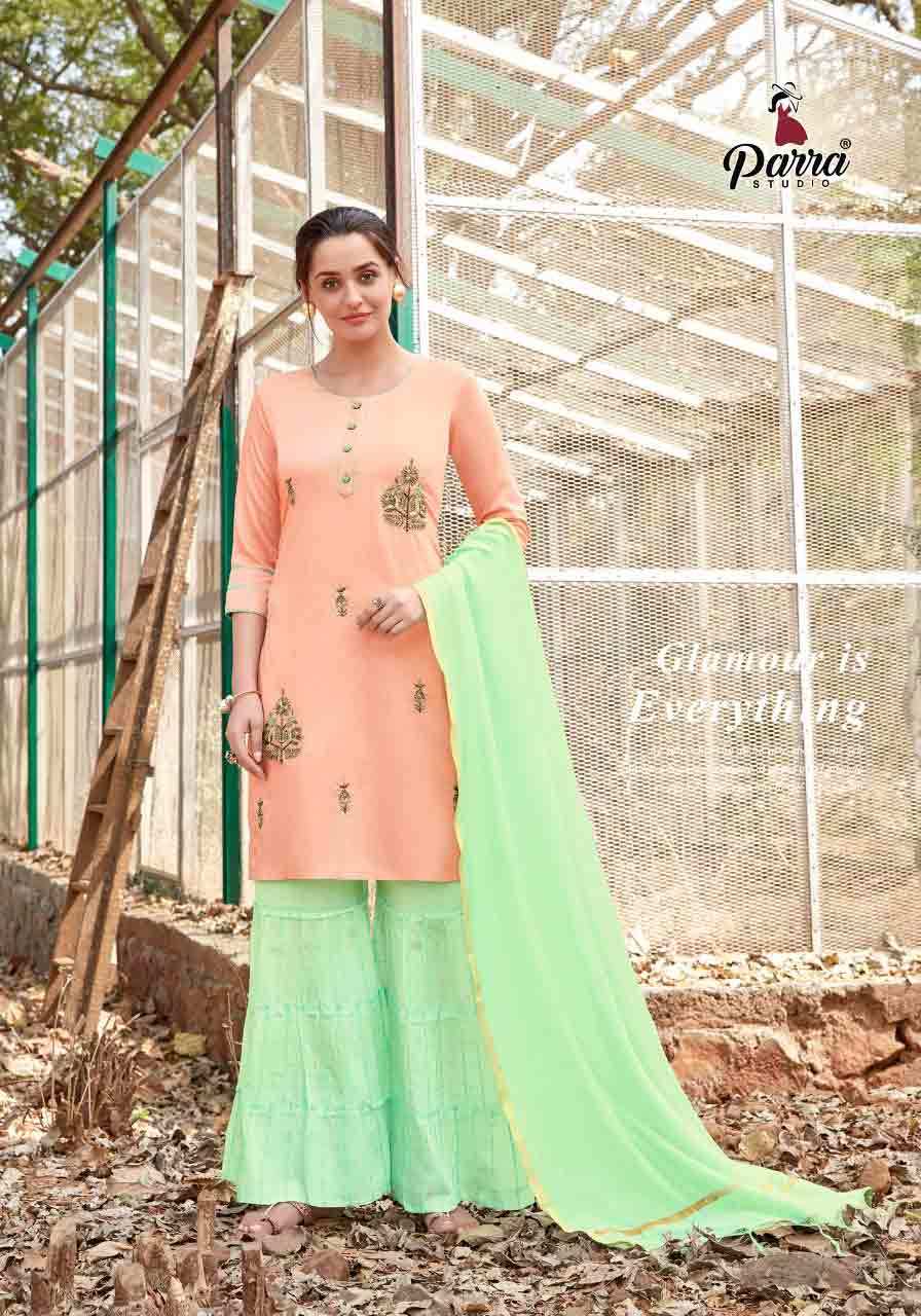 कैटलॉग के अनुसार शहनाज़ थोक विस्कोस कुर्ती सेट