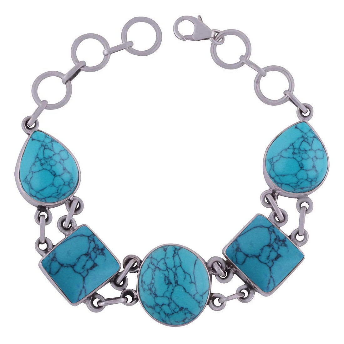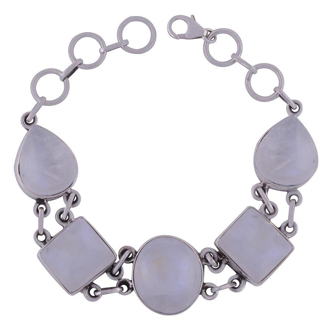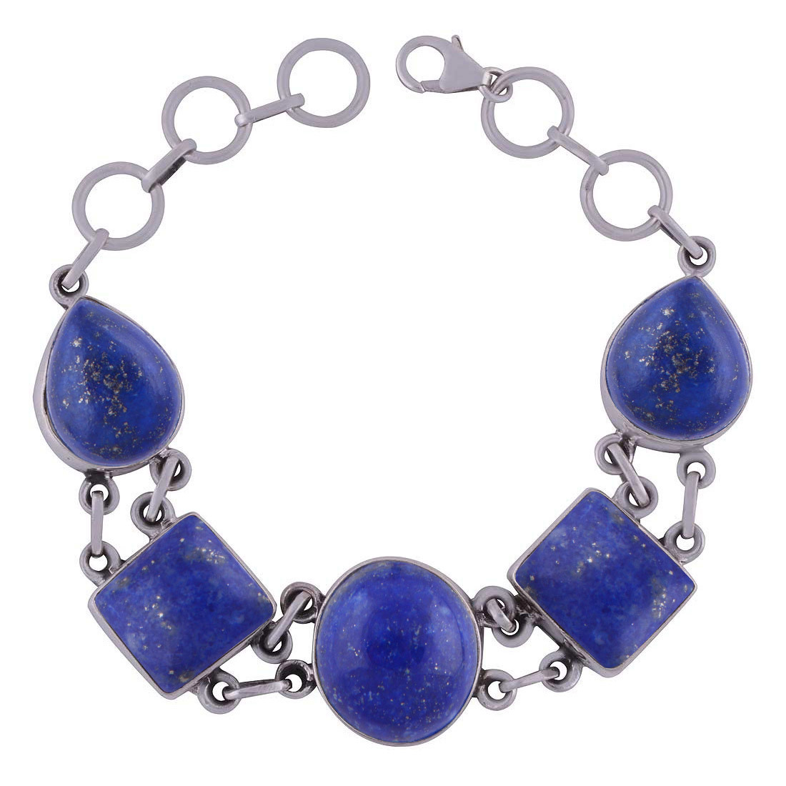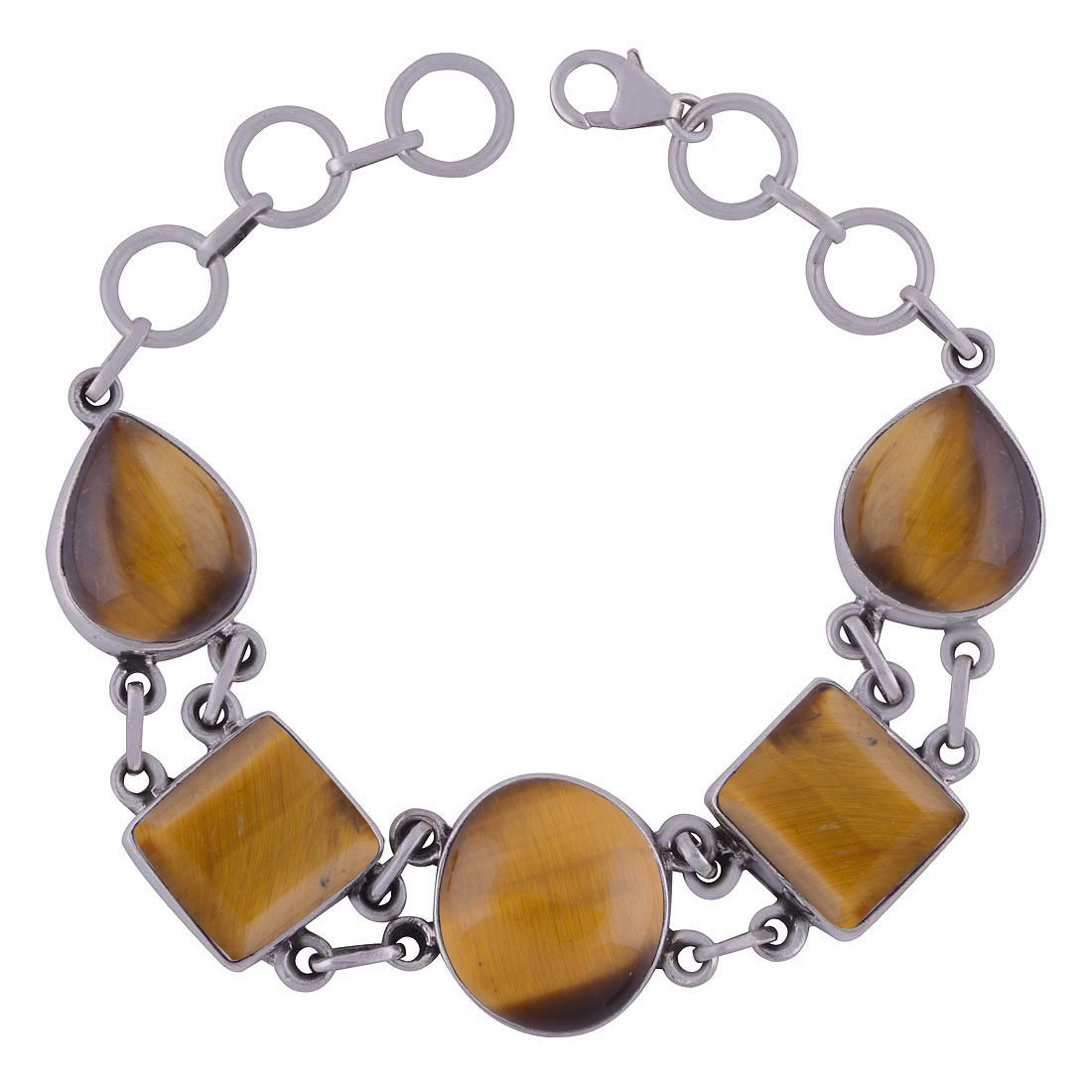 शिवा आई नेचुरल जेमस्टोन 925 स्टर्लिंग सॉलिड सिल्वर अनियमित कैबोचोन हैंडमेड ब्रेसलेट डायमीटर: लंबाई: 8 इंच X चौड़ाई:15 मिमी इंच (इंच)
