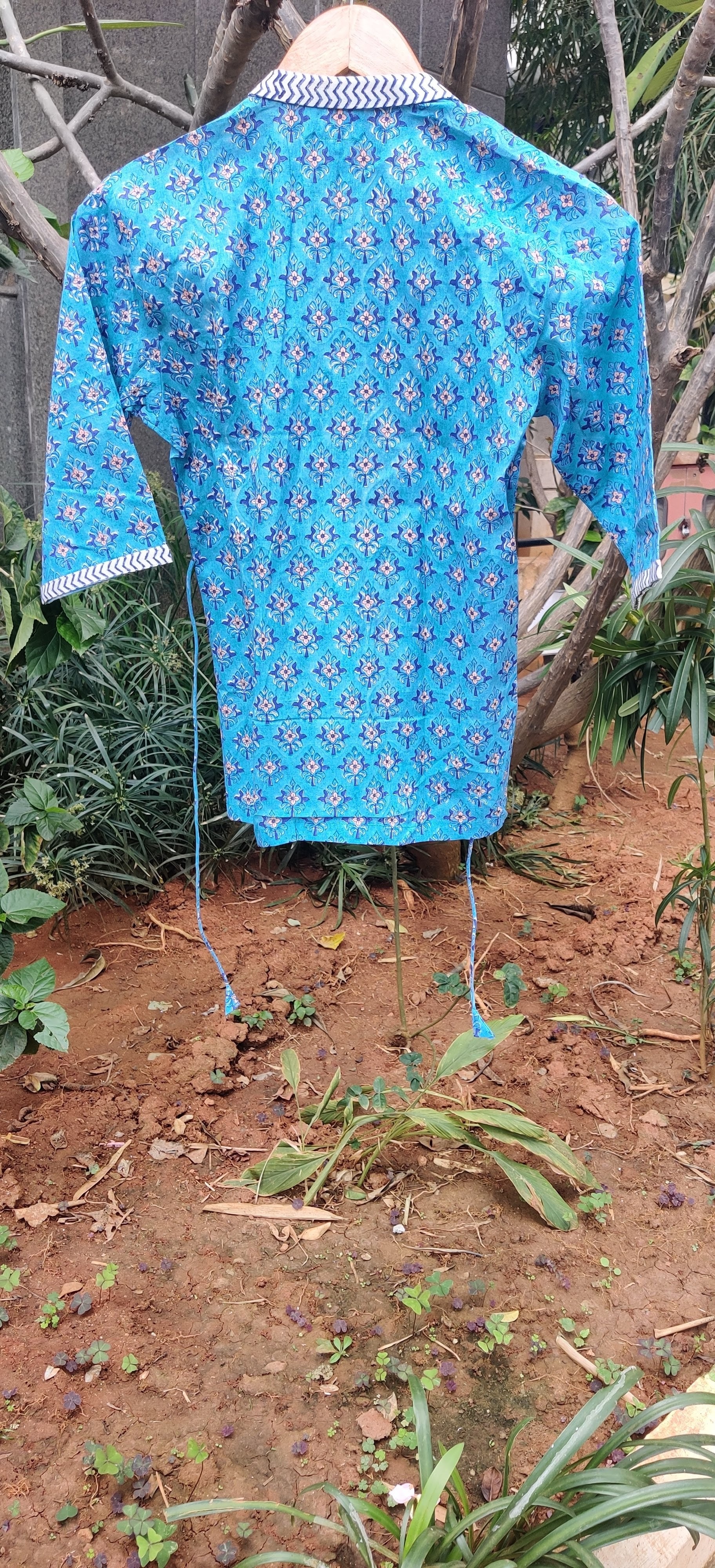 ब्लू प्रिंटेड श्रग एज ग्रुप: सभी आयु वर्ग
