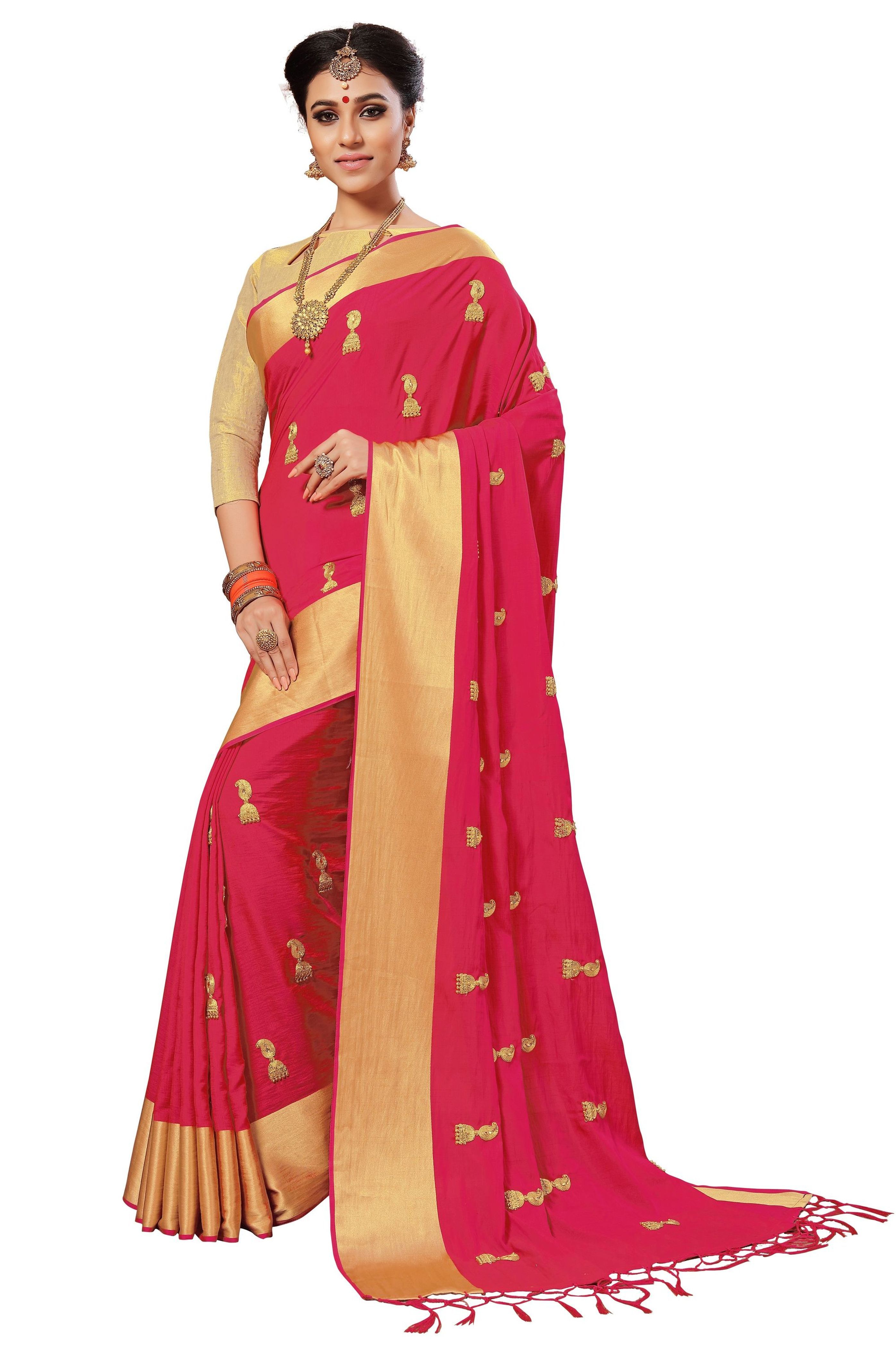 पिंक सिल्क एम्ब्रॉएडर्ड वर्क साड़ी