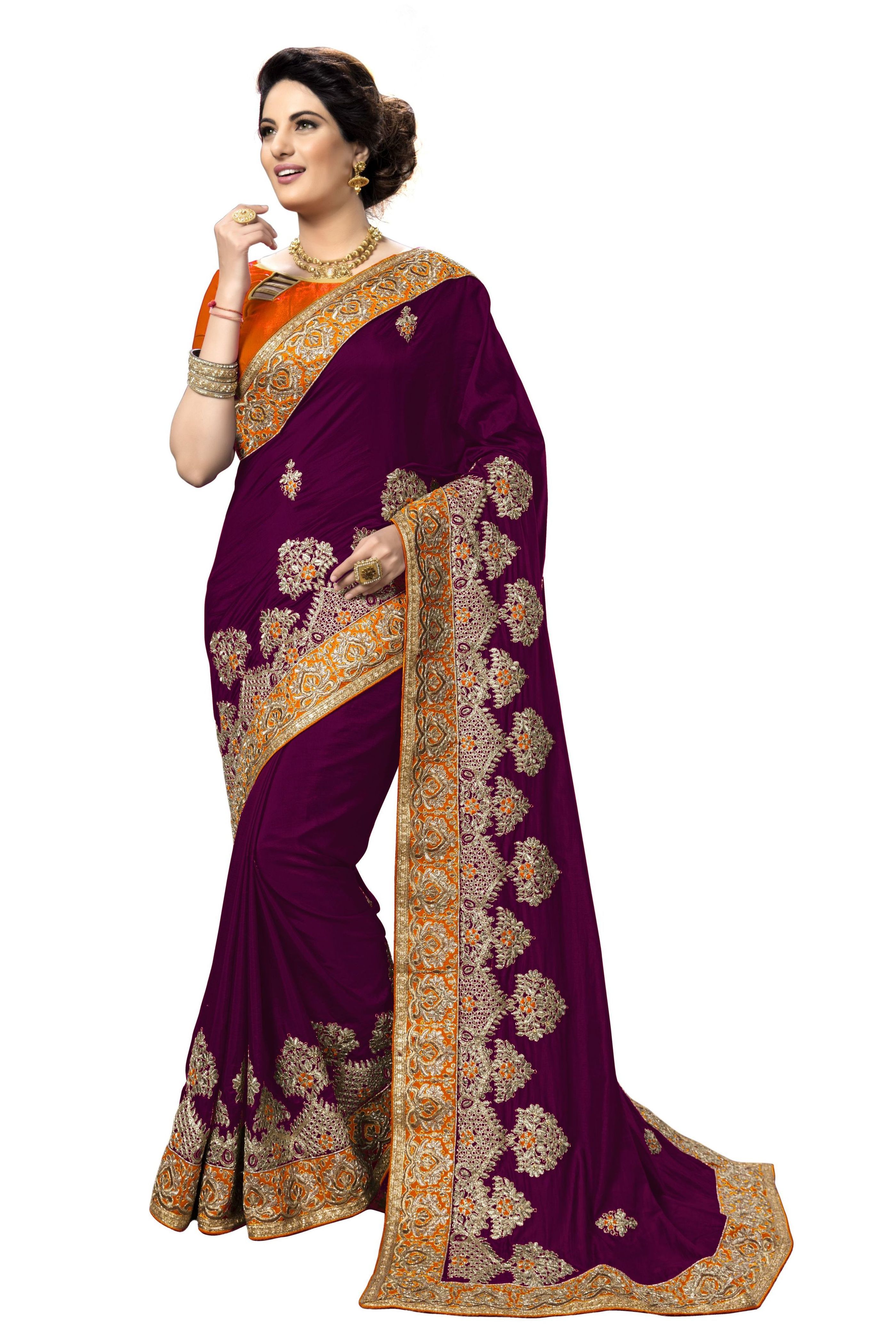 पर्पल सिल्क एम्ब्रॉयडरी वर्क साड़ी