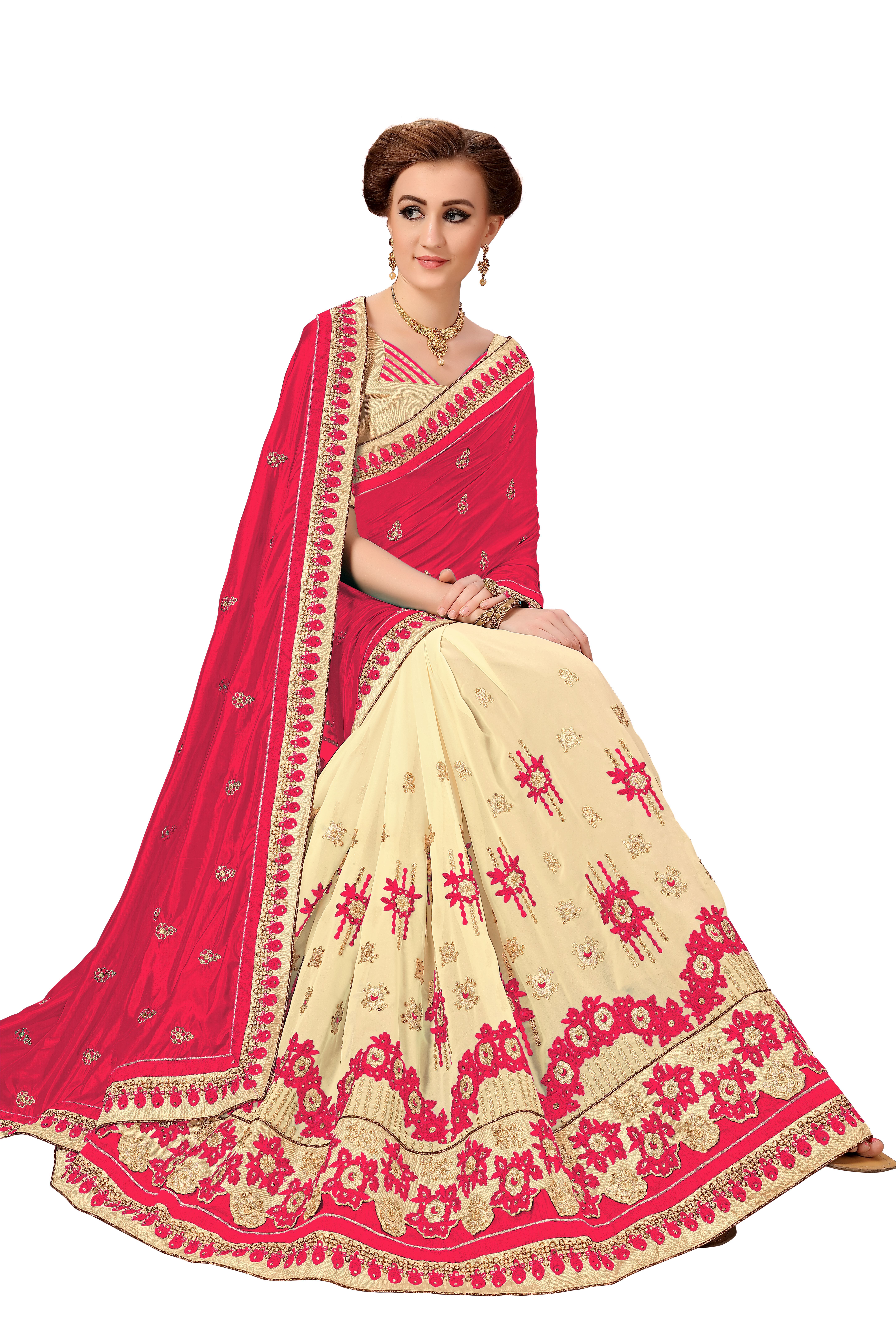रेड सिल्क और जॉर्जेट एम्ब्रॉएडर्ड साड़ी कलेक्शन