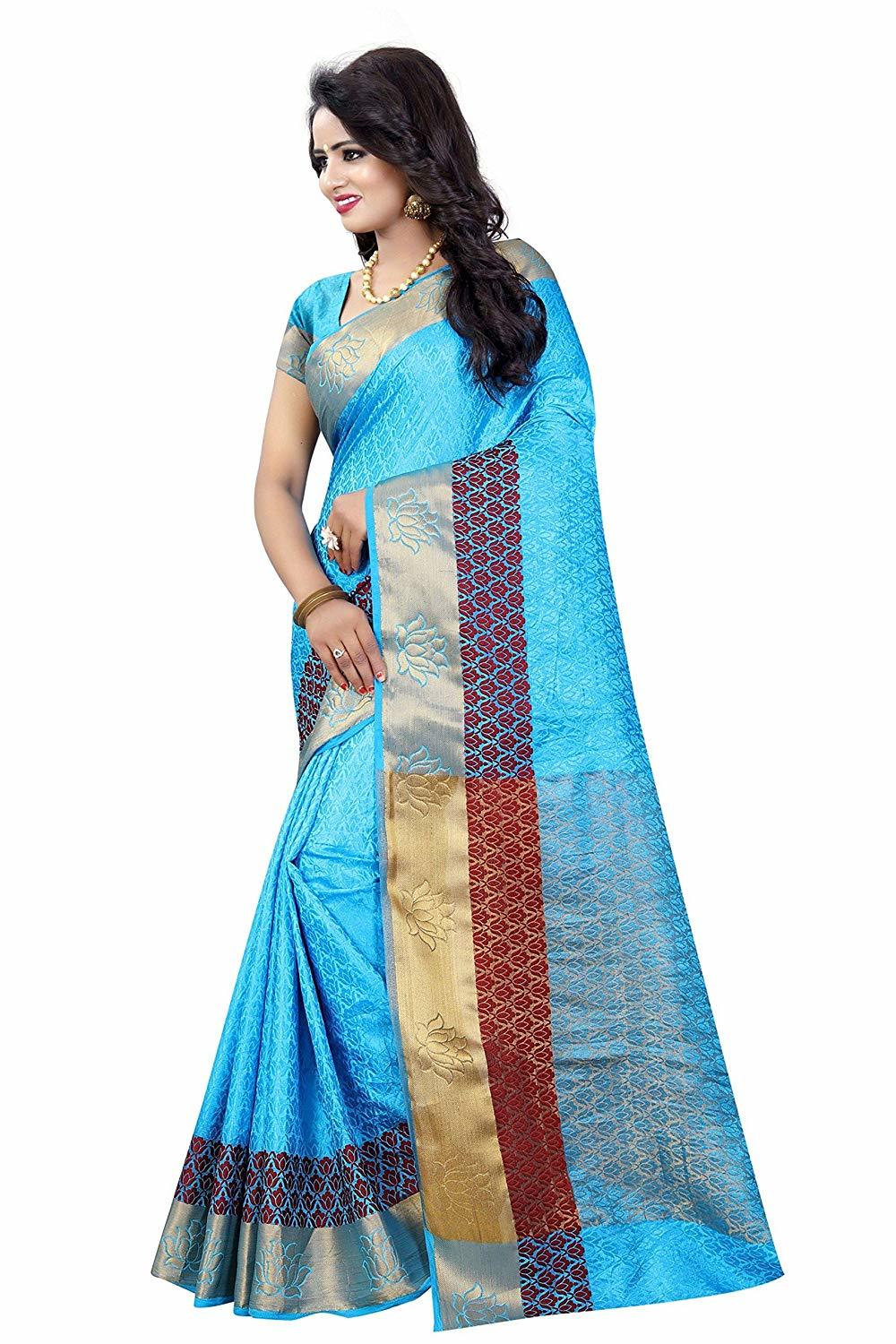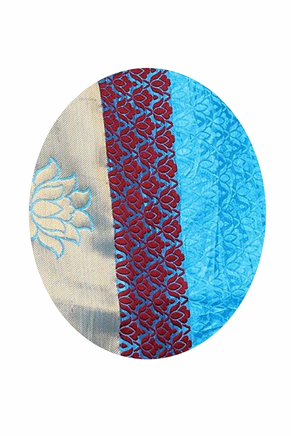 पिंक (गुलाबी) महिलाओं के लिए कॉटन ब्लेंड बेज प्रिंटेड साड़ी ब्लाउज पीस के साथ