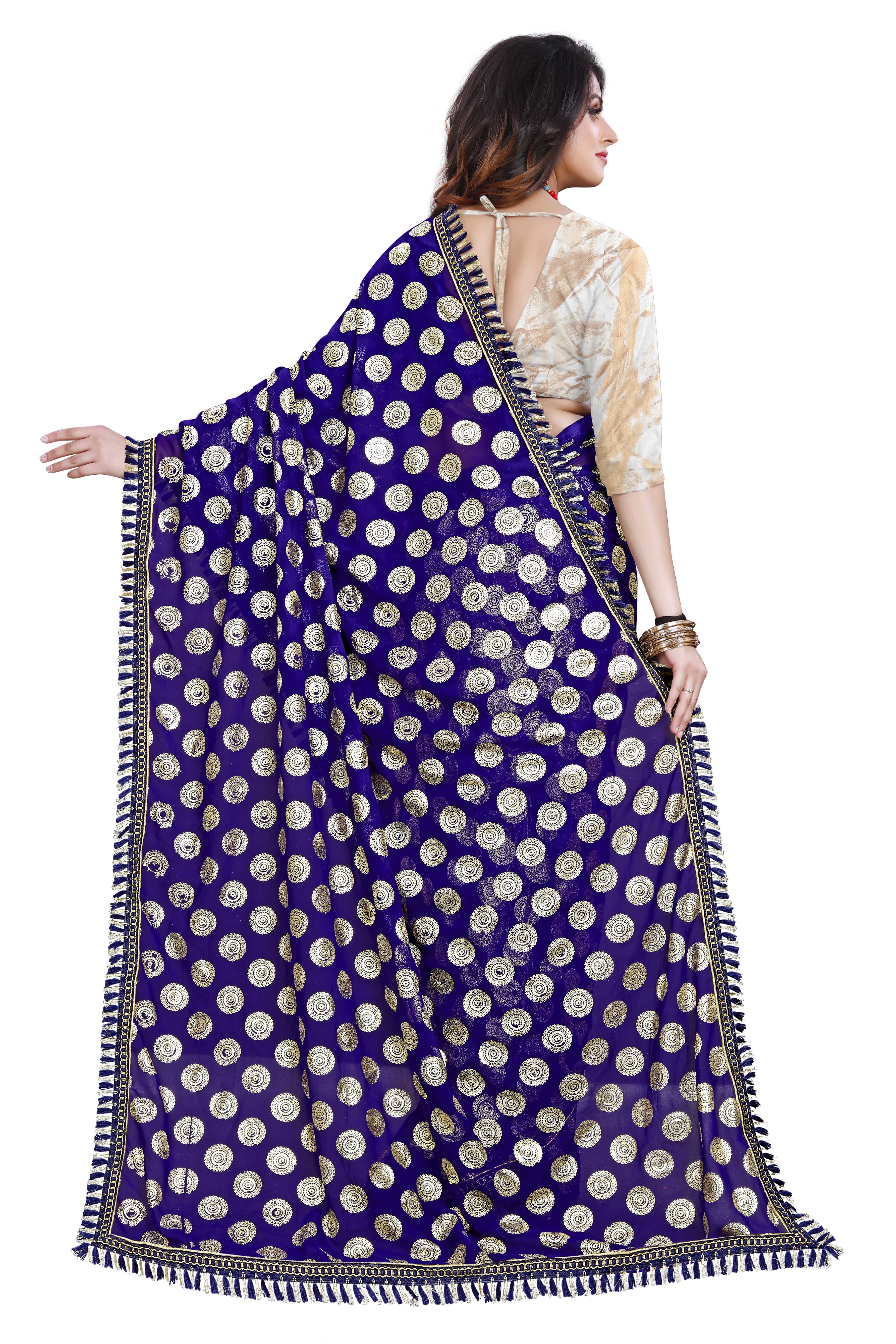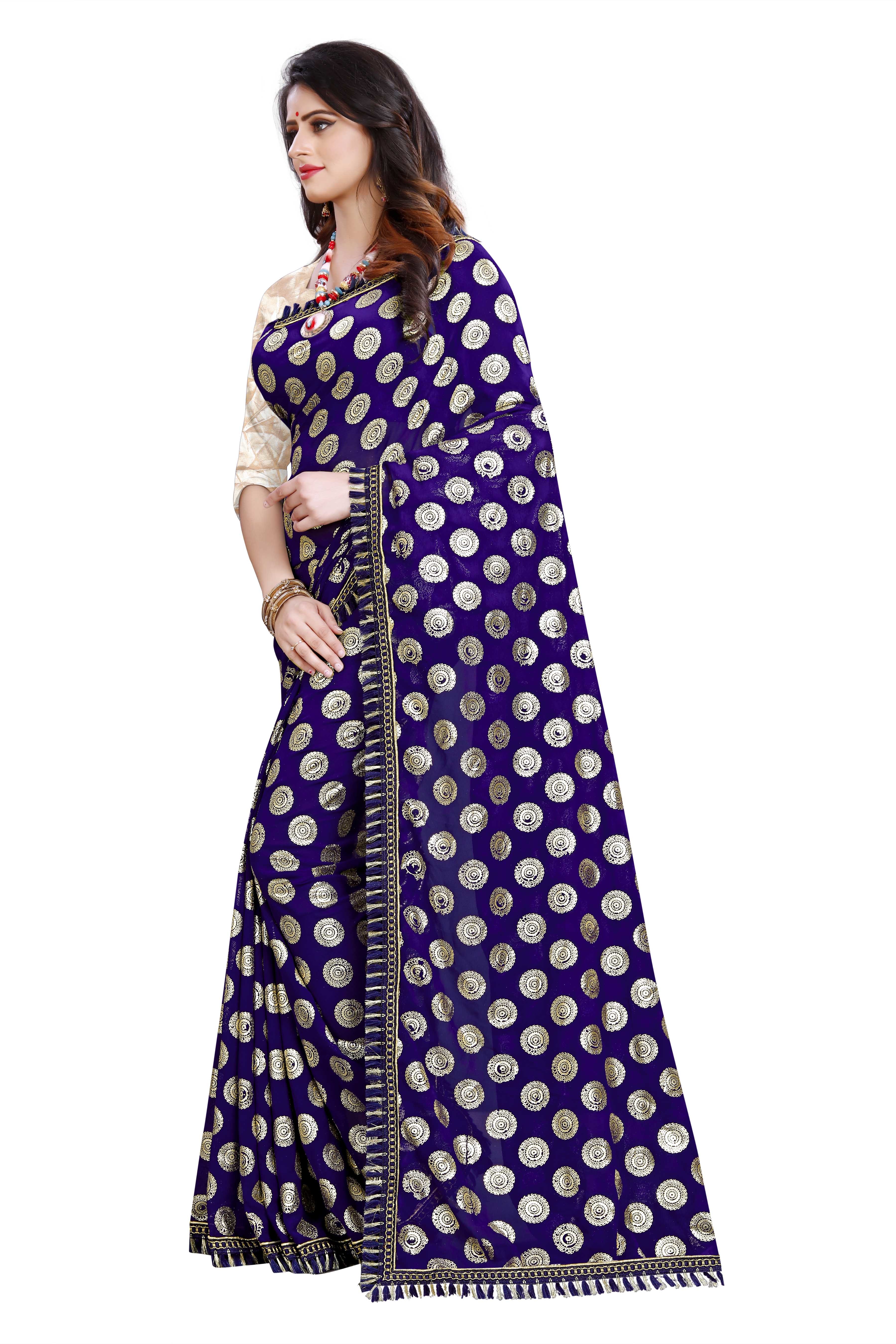 क्रीम रंग की महिलाओं की क्रश चिनोन साड़ी ब्लाउज़ और कमर बेल्ट के साथ