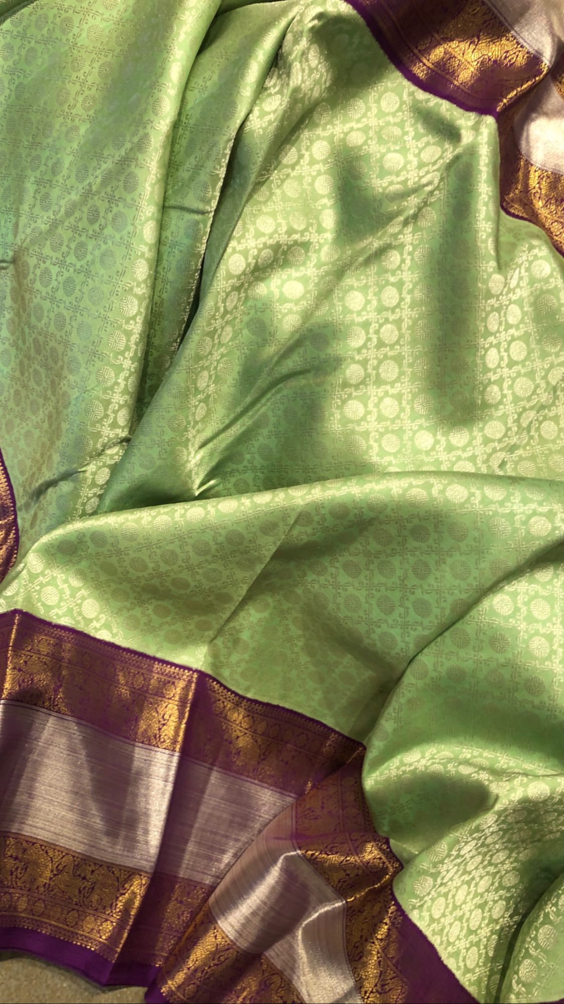 ग्रीन लीफ चेक्स पट्टू साड़ी
