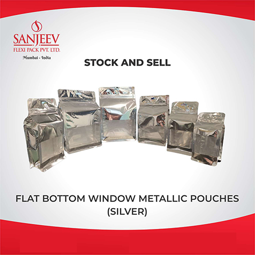सिल्वर फ्लैट बॉटम विंडो मेटैलिक पाउच