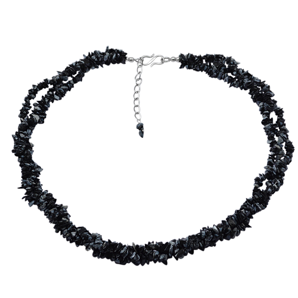 स्नोफ्लेक ओब्सीडियन जेमस्टोन चिप्स नेकलेस Pg-131545 आकार: 1.8x51.1