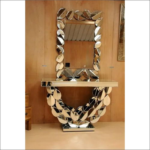 Explore in english - Silver Leaf Designed Mirrored Glass Console Table With Home Decor