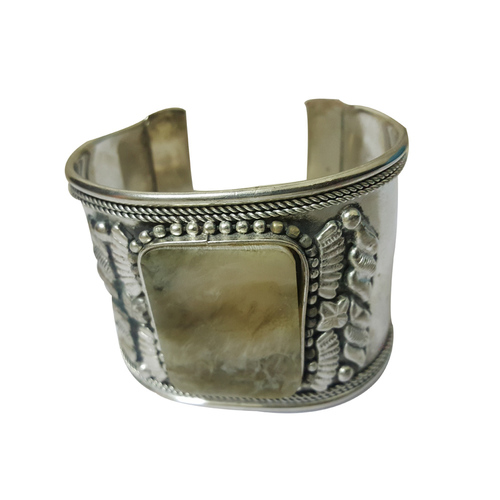 Explore in english - Silver Metal Bangle With Glass Stone Beads