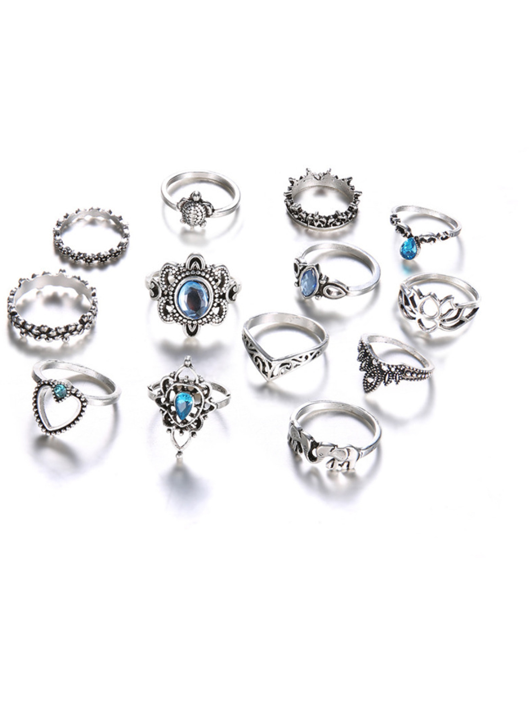 13 पीस मल्टी डिज़ाइन सिल्वर प्लेटेड रिंग सेट जेंडर: महिलाएं