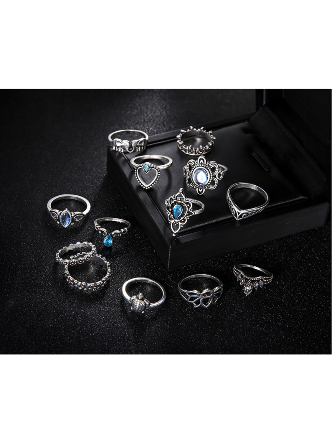 Explore in english - 13 Piece Multi Design Silver Plated Ring Set