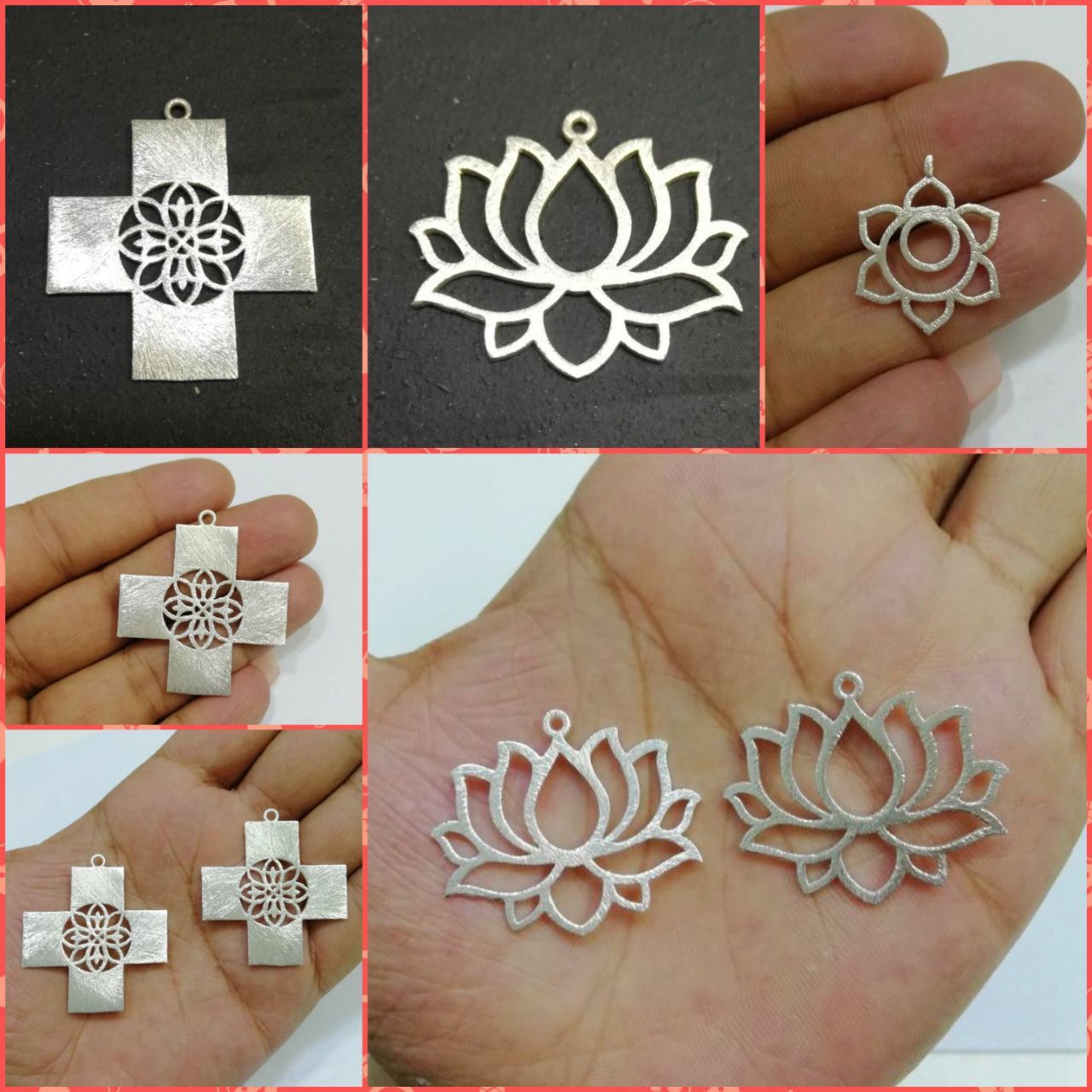 सिल्वर प्लेटेड लोटस शेप चार्म पेंडेंट - इयररिंग के लिए ज्वेलरी फाइंडिंग चार्म्स