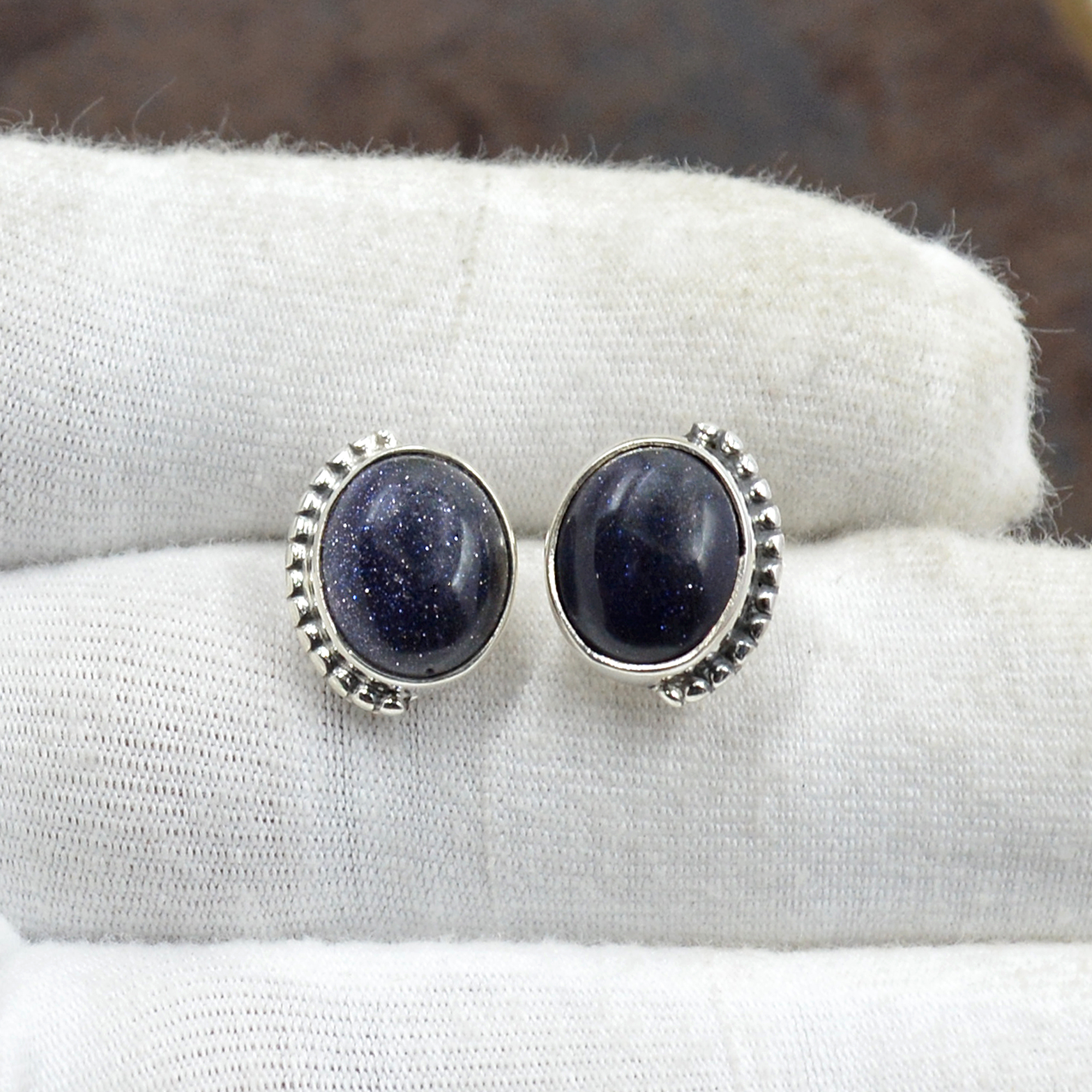 Silvesto India 925 स्टर्लिंग सिल्वर प्राकृतिक काला गोमेद अंडाकार आकार का रत्न स्टड इयररिंग महिलाओं के लिए