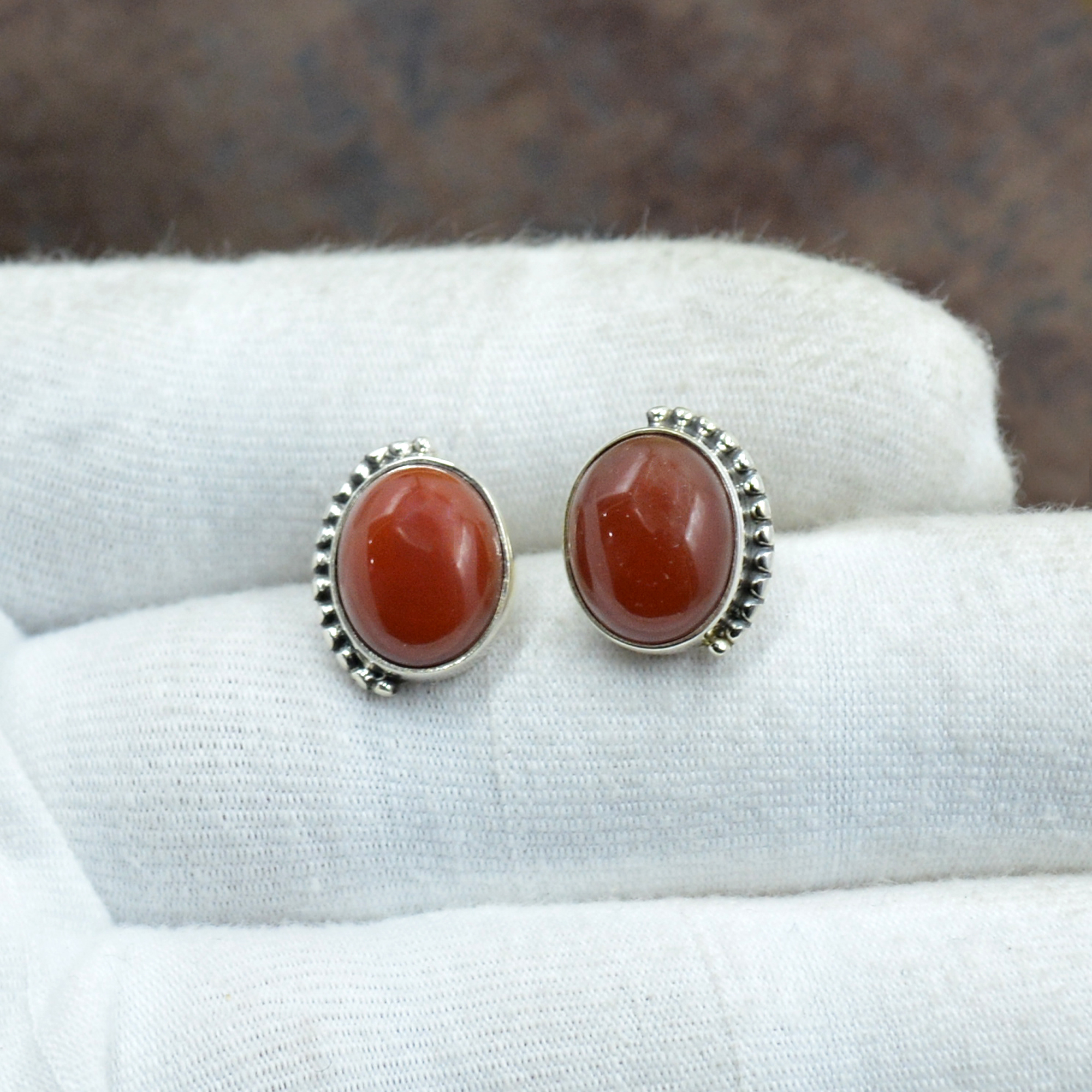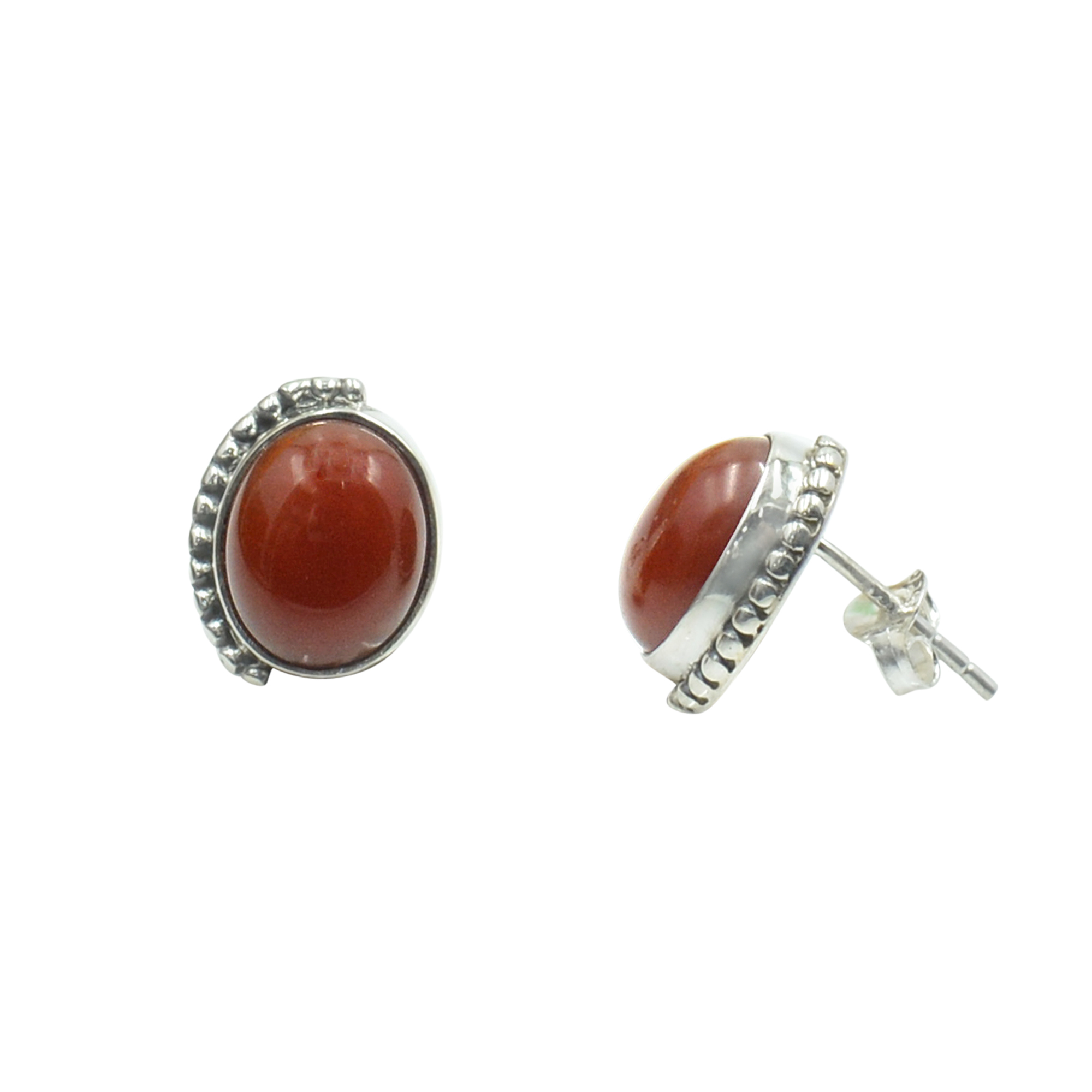 सिल्वेस्टो इंडिया 925 स्टर्लिंग सिल्वर नेचुरल रेड ओनिक्स ओवल शेप जेमस्टोन स्टड ईयररिंग महिलाओं के लिए साइज़: 1.4 Cm