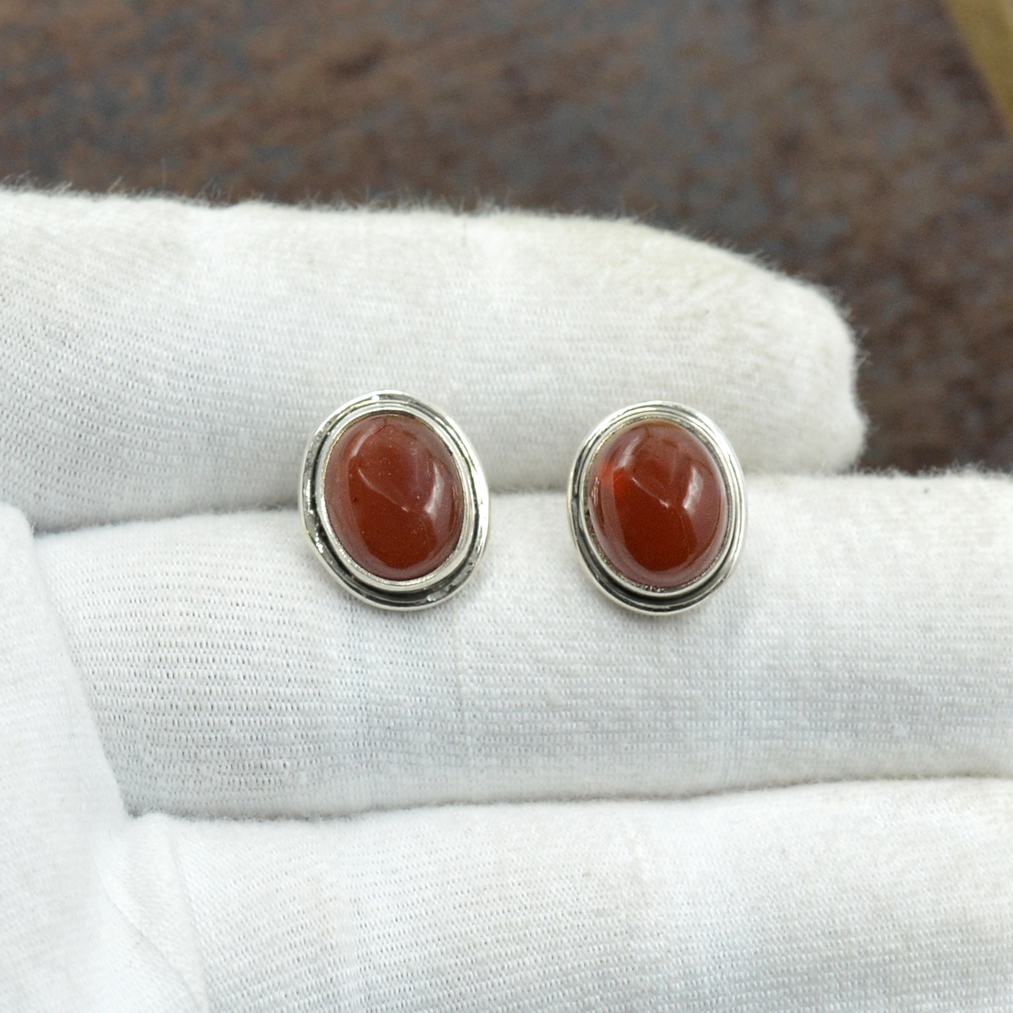 सिल्वेस्टो इंडिया 925 स्टर्लिंग सिल्वर नेचुरल रेड ओनिक्स ओवल शेप जेमस्टोन स्टड ईयररिंग महिलाओं के लिए साइज़: 1.5 Cm