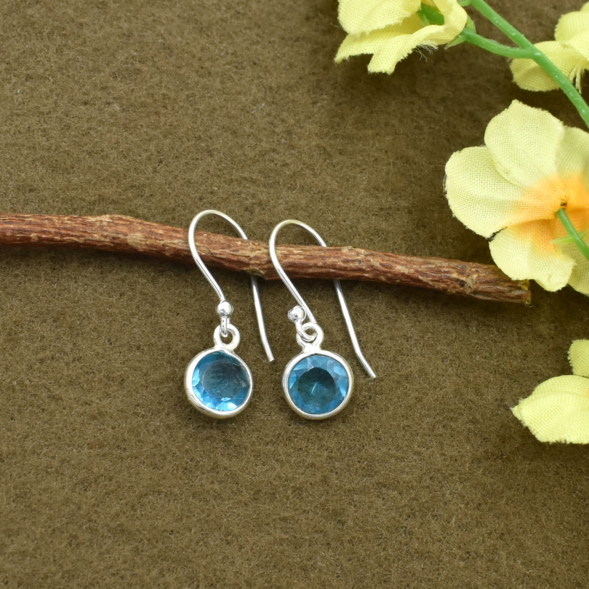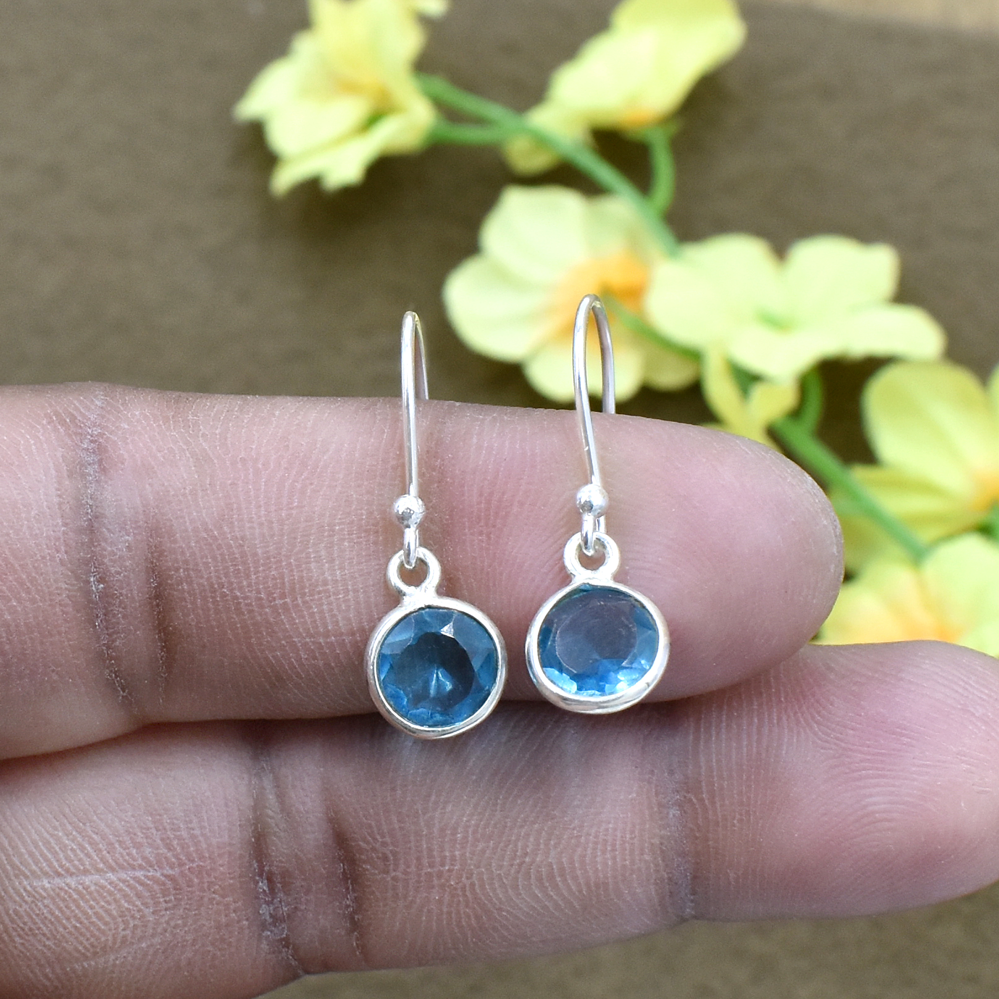 सिल्वेस्टो इंडिया नेचुरल ब्लू क्वार्ट्ज़ राउंड जेमस्टोन ईयररिंग 925 स्टर्लिंग सिल्वर डैंगल ड्रॉप फैशन ईयररिंग जेंडर: महिलाएं
