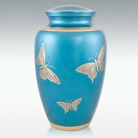 सिल्वर स्मॉल ब्लू बटरफ्लाई ब्रास श्मशान कलश उत्कीर्णन योग्य