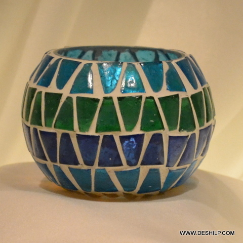 हस्तनिर्मित मोज़ेक ग्लास मोमबत्ती धारक