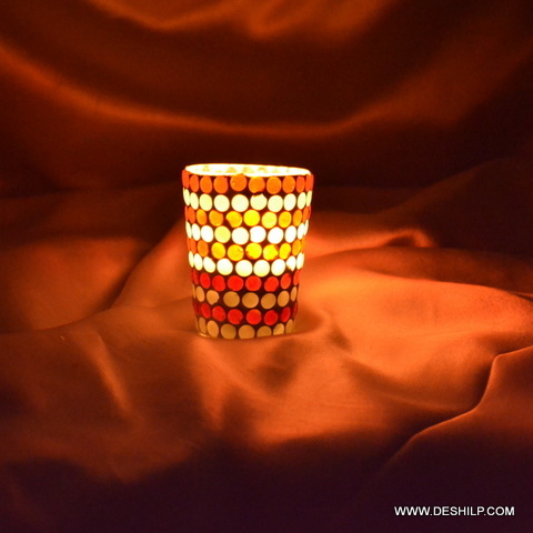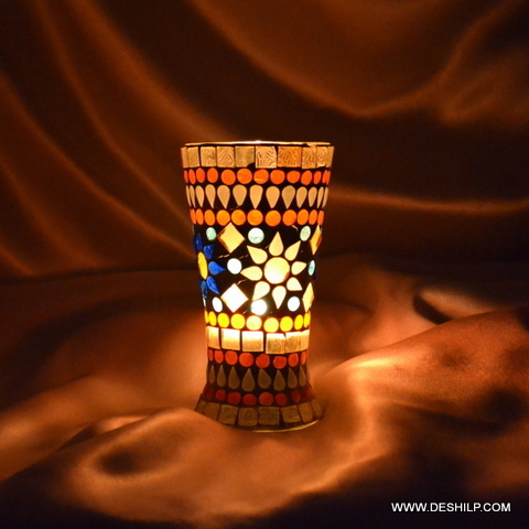हस्तनिर्मित मोज़ेक ग्लास मोमबत्ती धारक