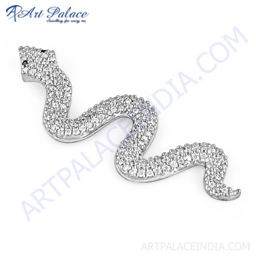 स्नेक स्टाइल क्यूबिक जिरकोनिया और ब्लैक ओनिक्स जेमस्टोन सिल्वर पेंडेंट