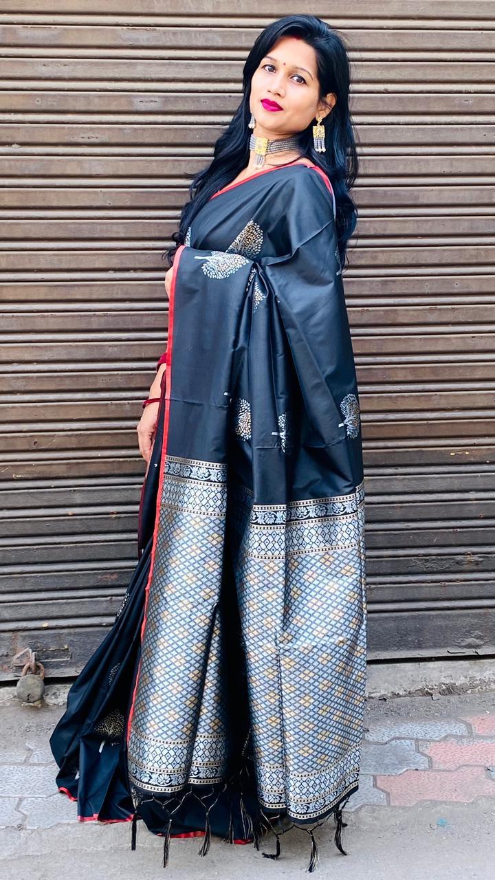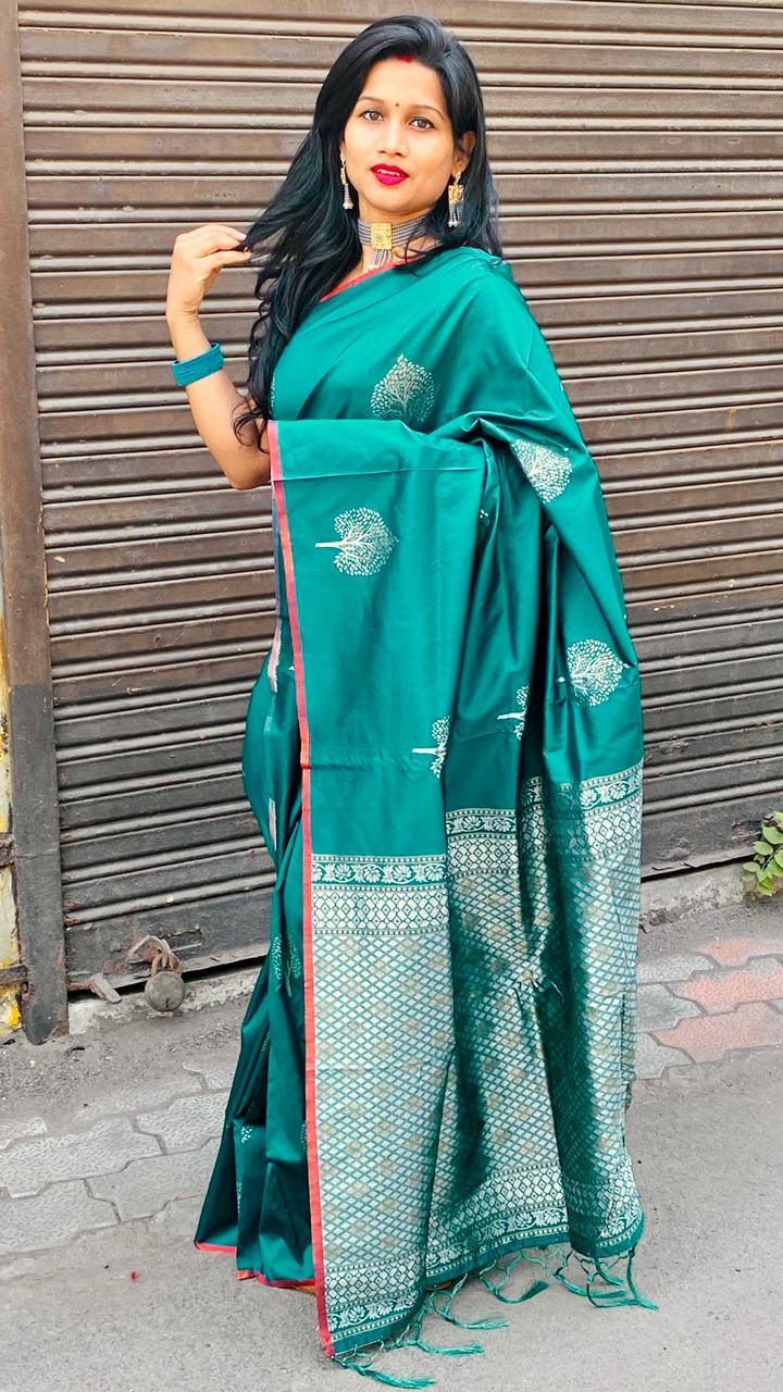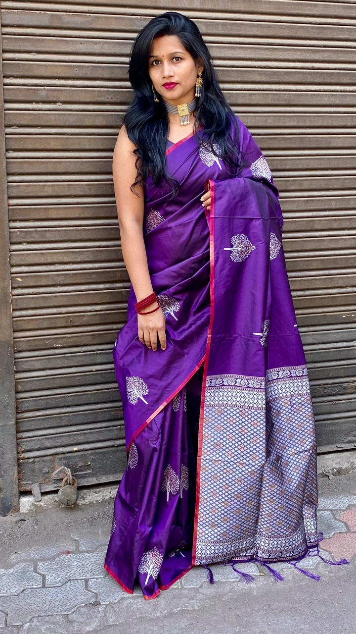 शादी के लिए शुद्ध बनारसी ज़री कार्य वाली सिल्क साड़ी