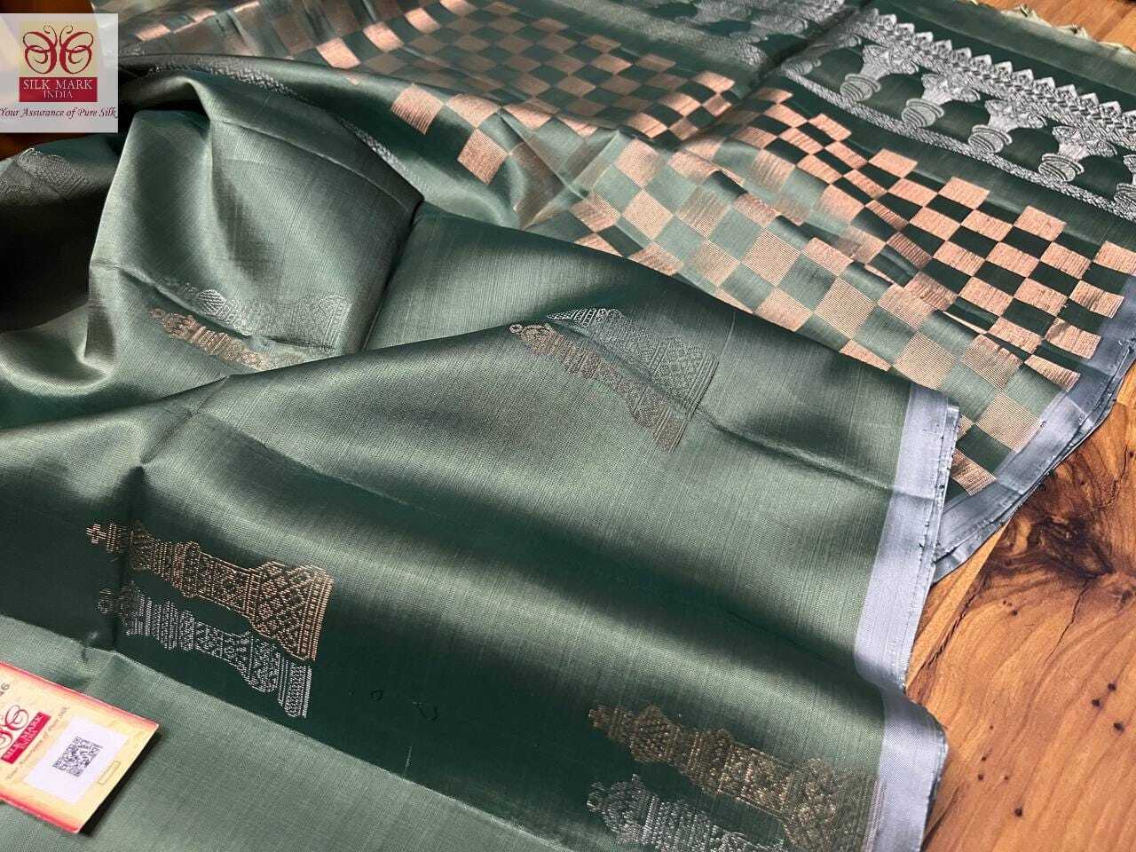 ग्रे सॉफ्ट सिल्क साड़ी शतरंज बुट्टा कांजीवरम सिल्क
