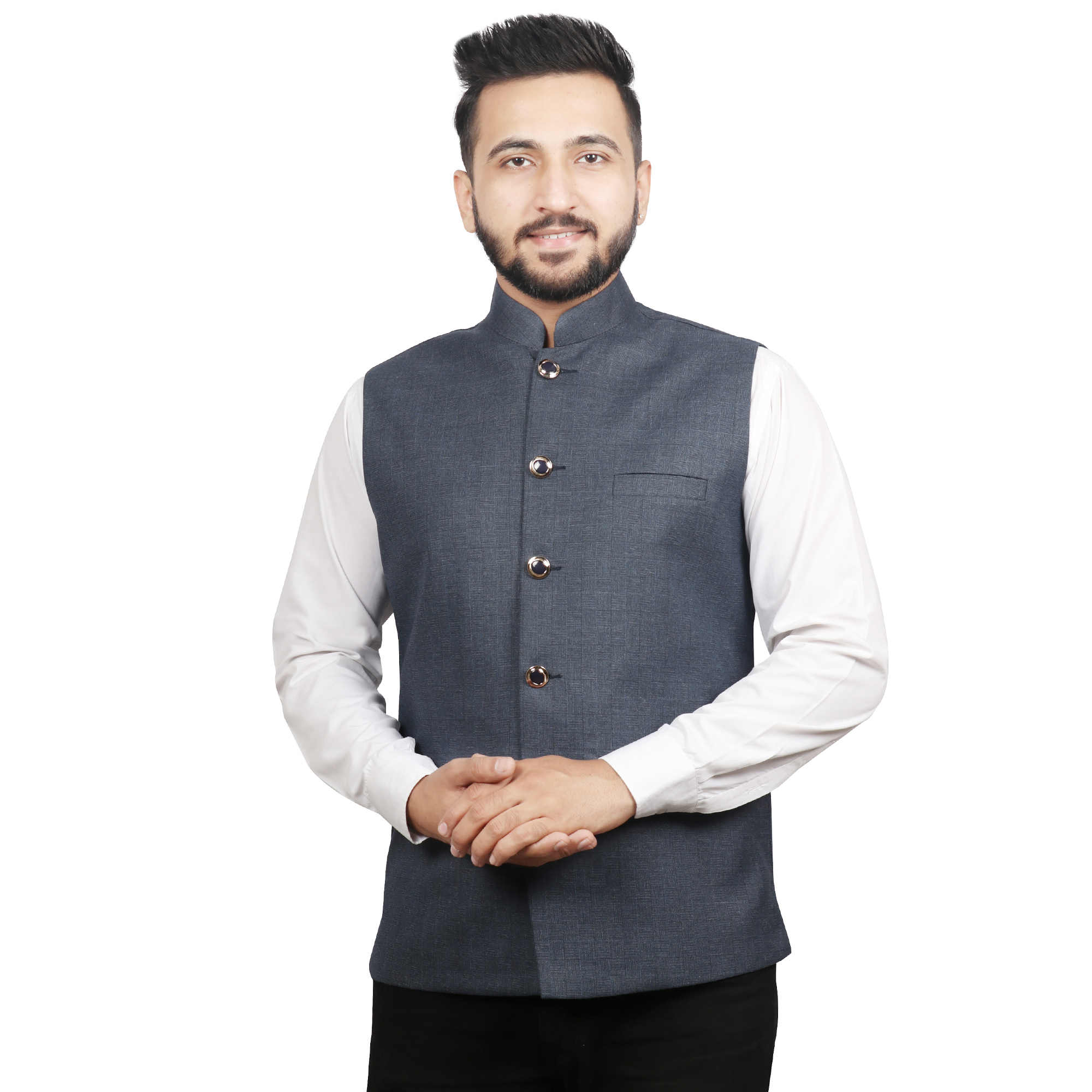 ब्लैक सॉलिड मेन एथनिक जैकेट