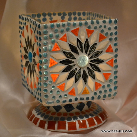 एंटीक इमिटेशन स्क्वायर ग्लास टी लाइट होल्डर