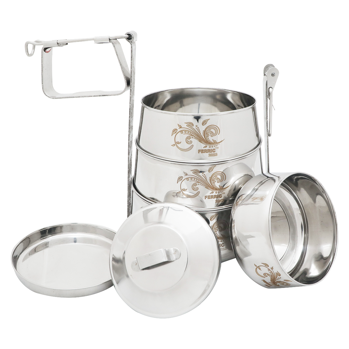 स्टेनलेस स्टील 4 कंटेनर पिरामिड लंच बॉक्स