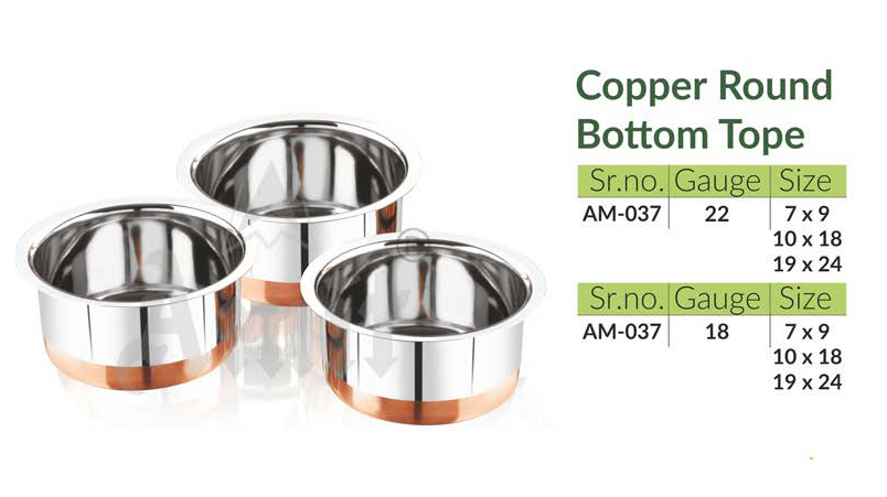 | सतह की फ़िनिश | Copper Bottom, Polished |