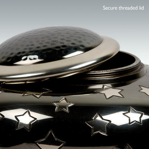 ब्लैक एंड सिल्वर स्टाररी नाइट ब्रास चाइल्ड श्मशान कलश