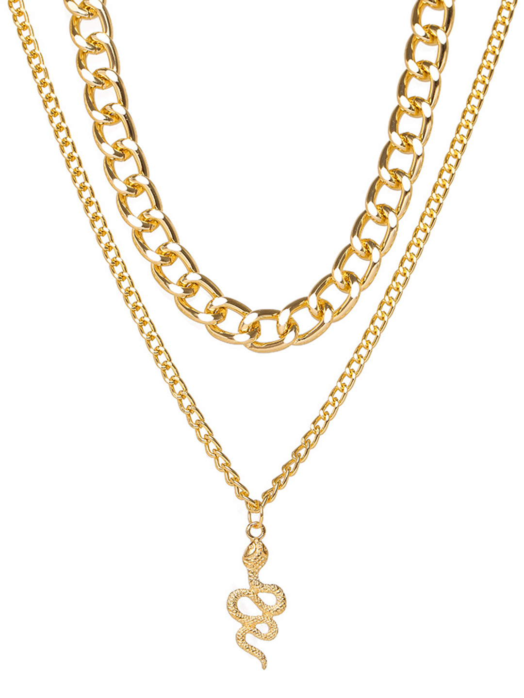 Explore in english - Gold Plated Double Layered Chain and Snake Pendant Necklace