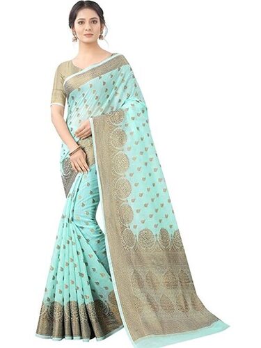 कॉटन स्टाइलिश और फैंसी आकर्षक ऑरेंज पिंक शिफॉन बांधनी प्रिंटेड लेस बॉर्डर महिलाओं के लिए साड़ी