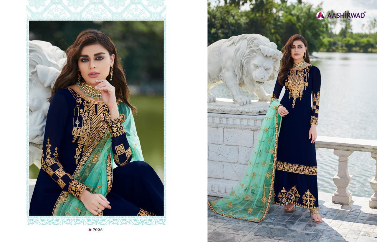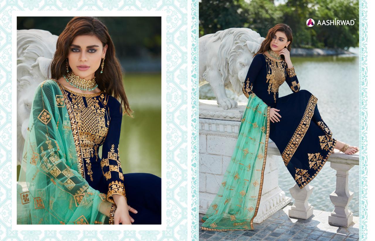ब्लू हैवी पार्टी वियर प्लाज़ो सलवार सूट