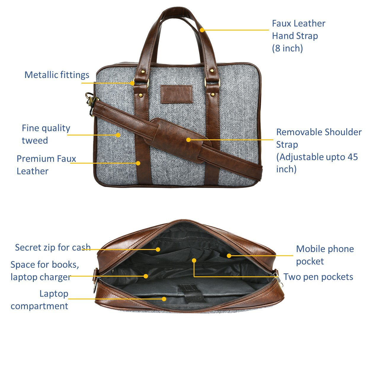स्टाइलिश लेदरेट फ़ैब्रिक रोज़ाना ऑफिस लैपटॉप बैग 15.6", एडजस्टेबल स्ट्रैप और 3 कम्पार्टमेंट लिंग: यूनिसेक्स