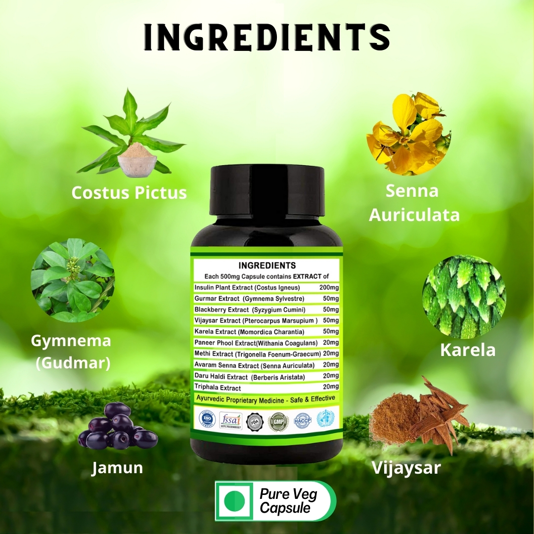 | उप सामग्रियां | Jamun , Karela , Amla , Neem |