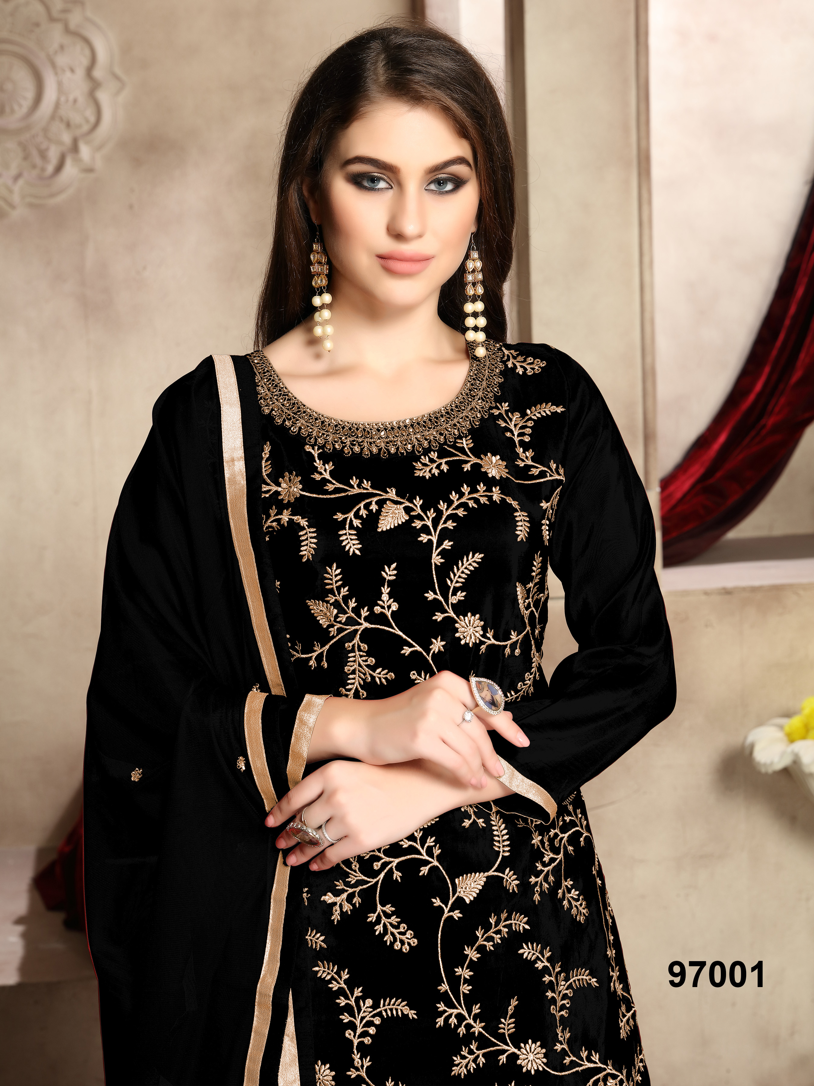 ब्लैक न्यू स्टाइलिश स्ट्रेट कट सलवार कमीज़