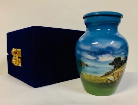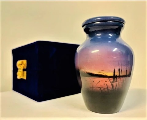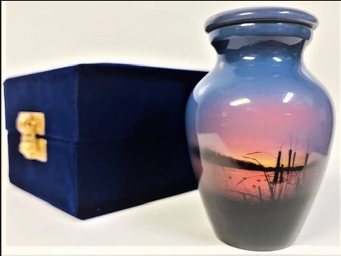 ब्लू सनराइज ऑन द वाटर/सिटिंग डक्स थीम श्मशान कलश