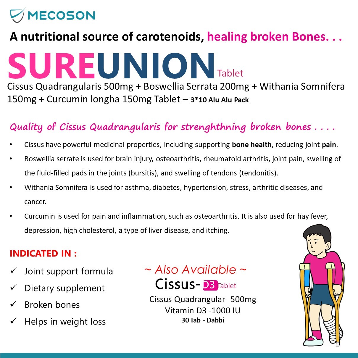 | Salt Composition | Cissus 500mg, Boswellia 200mg,Withania Somnifera 150mg, Curcumin longha 150mg Tab |
