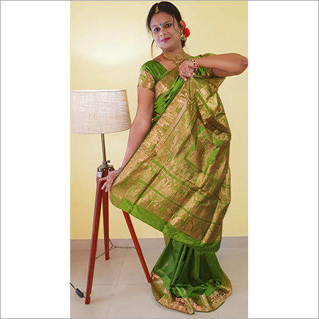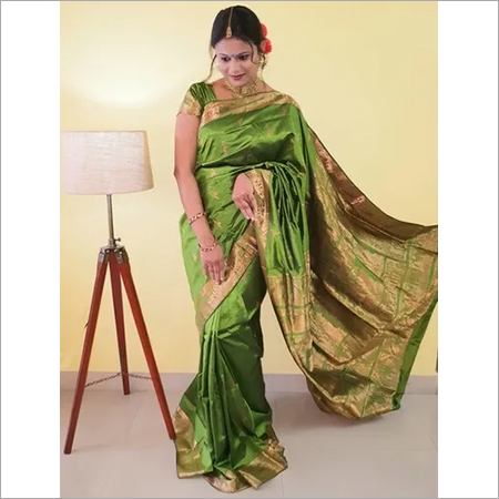 मेहंदी ग्रीन स्वर्णचुरी प्योर सिल्क साड़ी