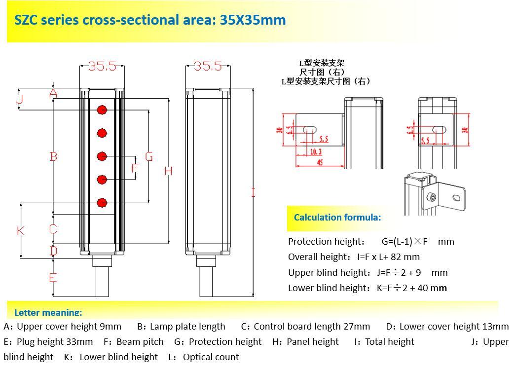 Szc श्रृंखला सुरक्षा लाइट कर्टन का आड़ा क्षेत्रफल: 35*35*l मिमी