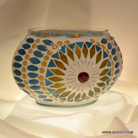 मोज़ेक के साथ ग्लास टी लाइट कैंडल होल्डर