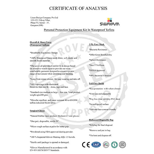 - तफेटा सीलबंद पीपीई किट 40gsm-wtape