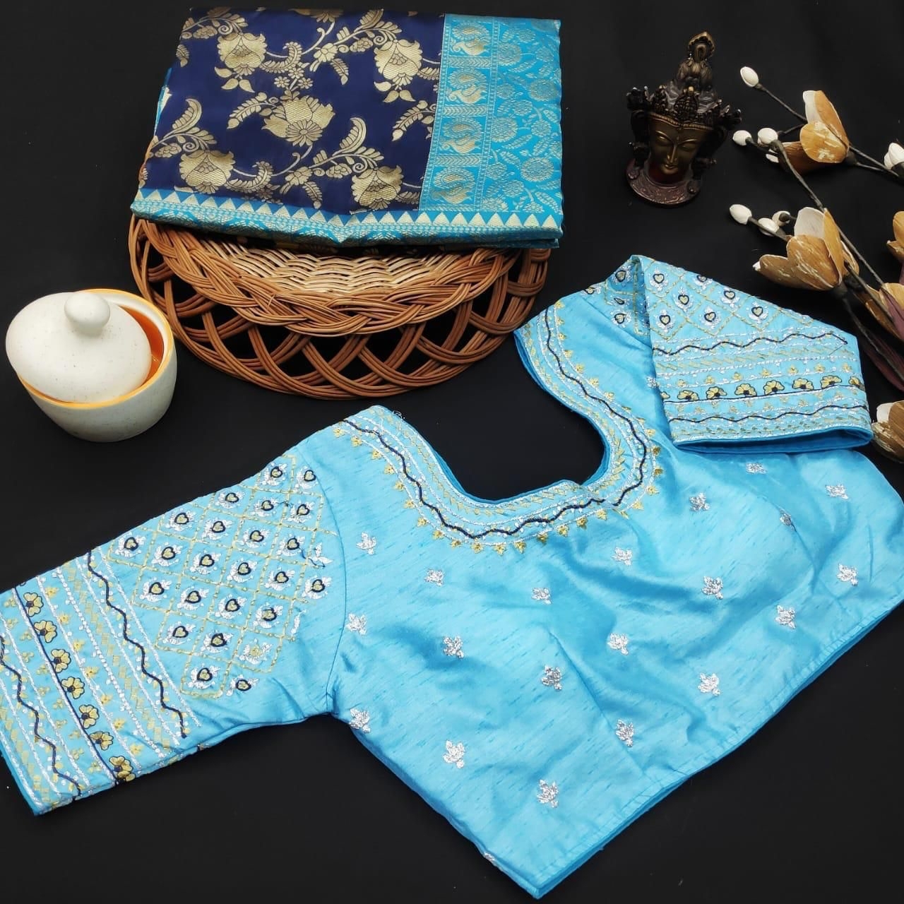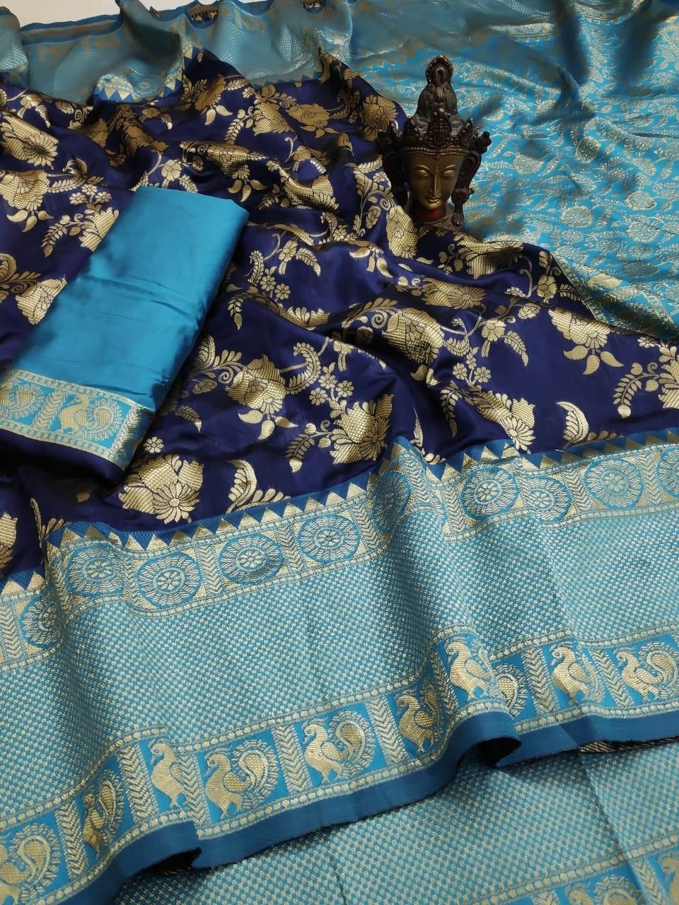 पार्टी वियर तनुजा ब्लू सॉफ्ट लीची सिल्क साड़ी