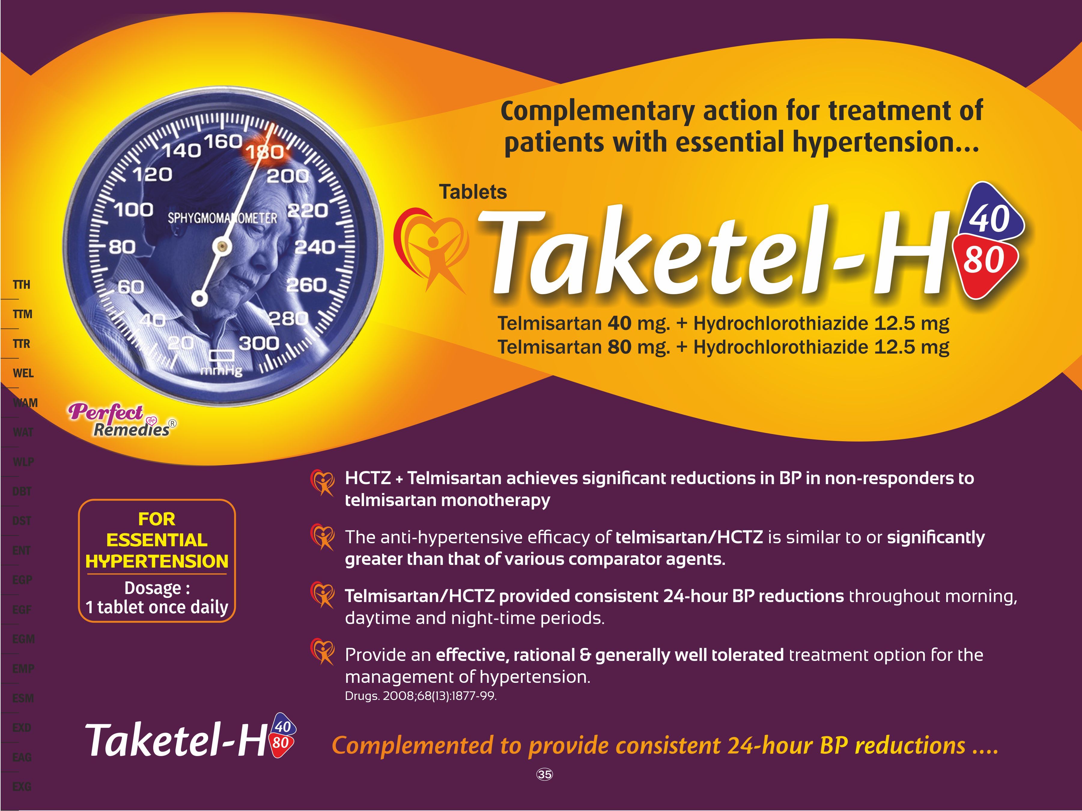 | सामग्रियां | Telmisartan 40 mg + Hydrochlorothiazide 12.5 mg, Telmisartan 80 mg + Hydrochlorothiazide 12.5 mg |