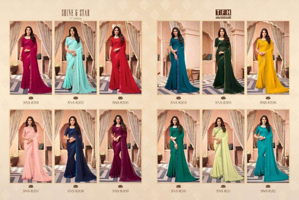 Explore in english - TFH Shine & Star 2nd Edition Smooth Georgette SAree Catalog